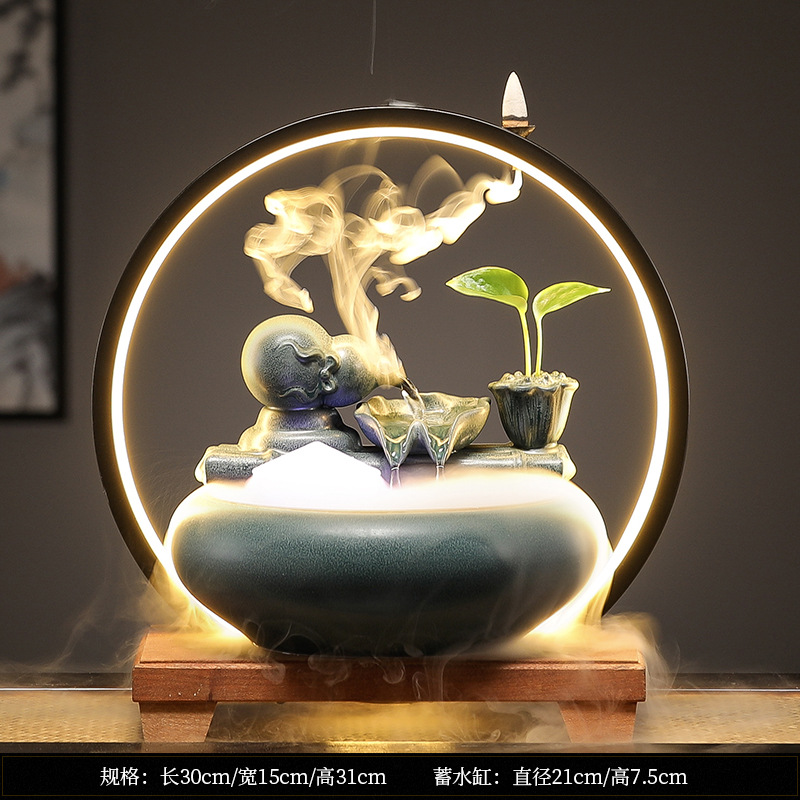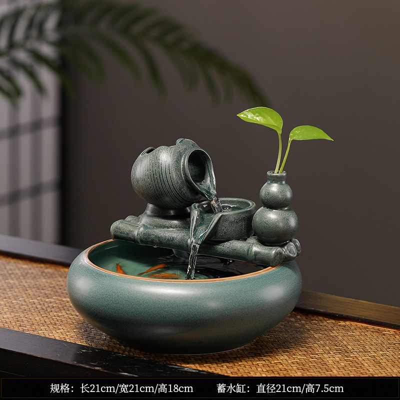 New Chinese-style wealth-attracting water flow decorative items, small ceramic tabletop, living room tea table, office decoration, circulating water landscape