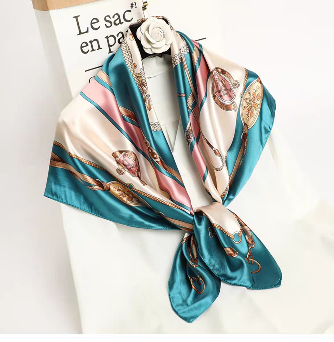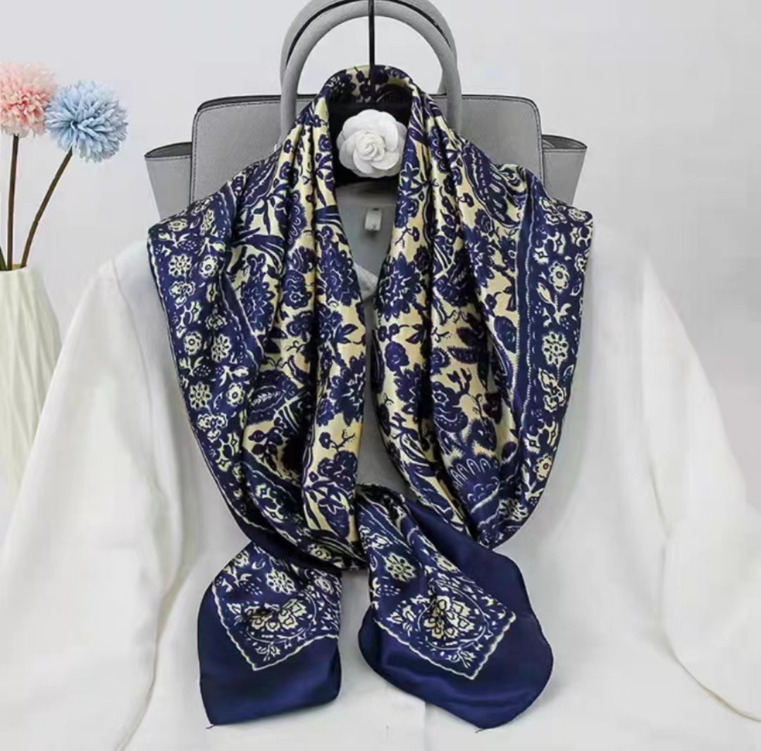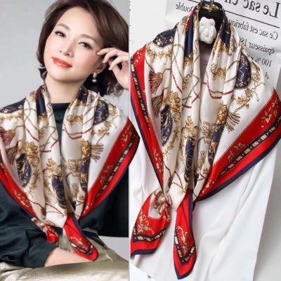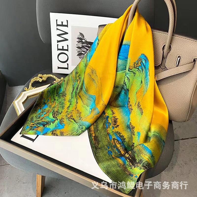 New Chinese-style women's gifts with a Chinese trend, a large square scarf with a picture of a thousand miles of rivers and mountains, a silk-like silk scarf shawl, and a Mother's Day scarf