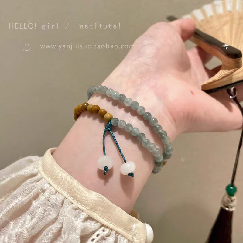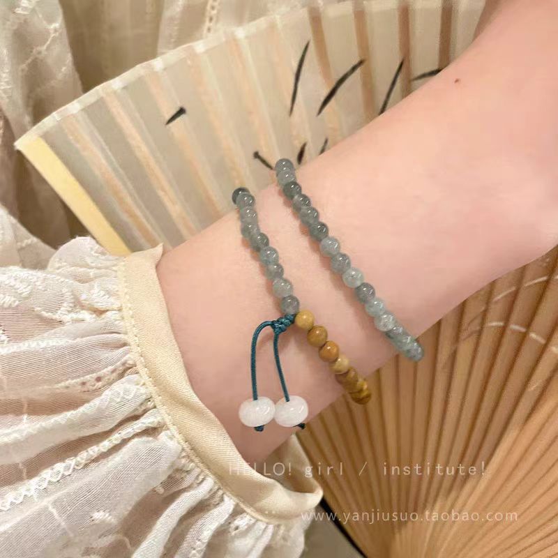 New Chinese-style wood-grain stone spliced women's unique and niche design sense pink crystal jade bracelet retro Chinese style jewelry