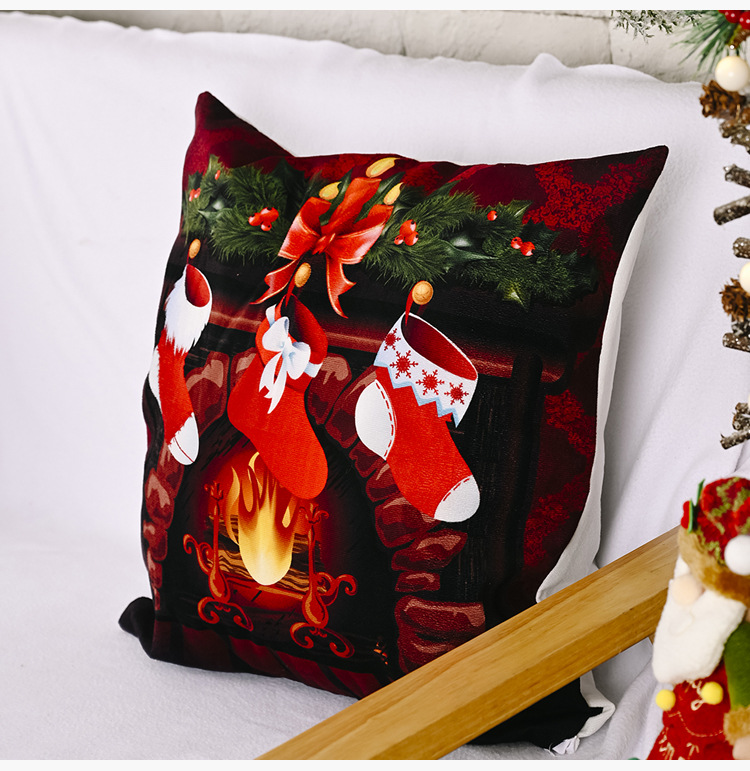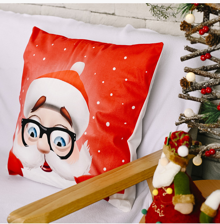 New Christmas decorations: Creative velvet pillowcases, cartoon old man print pillowcases, square throw pillowcases