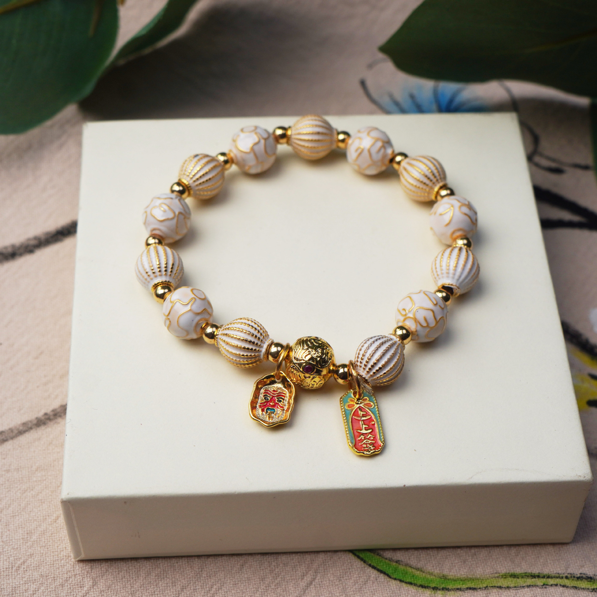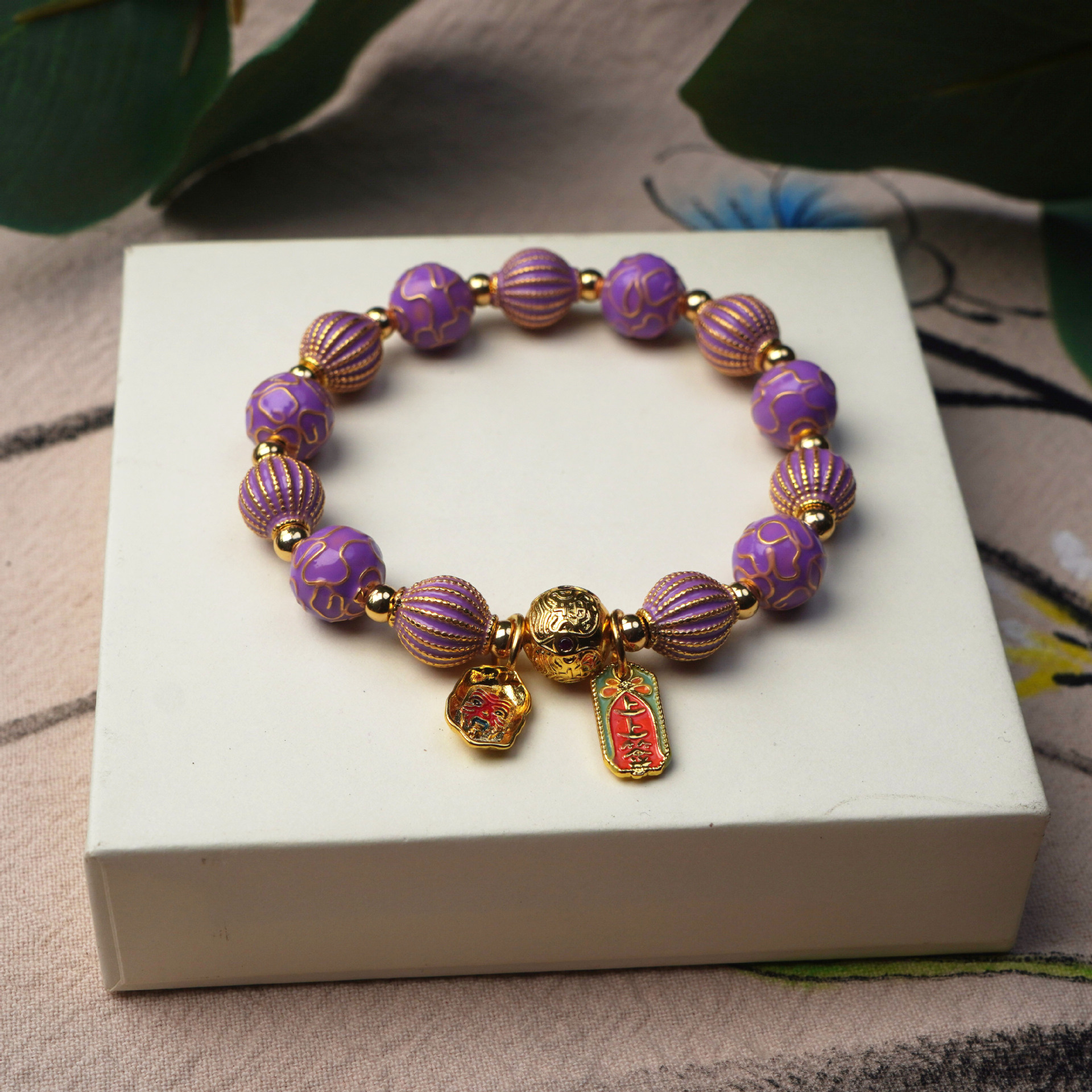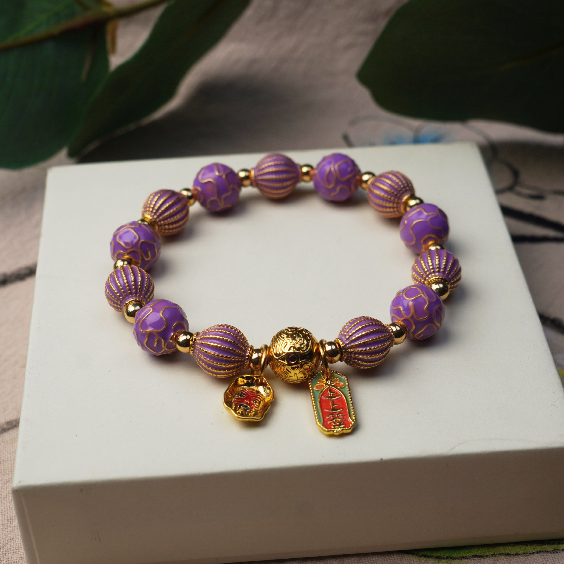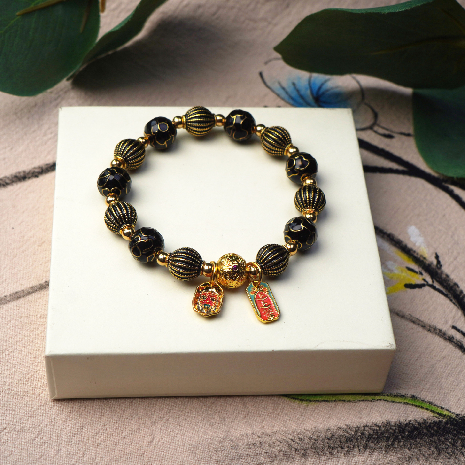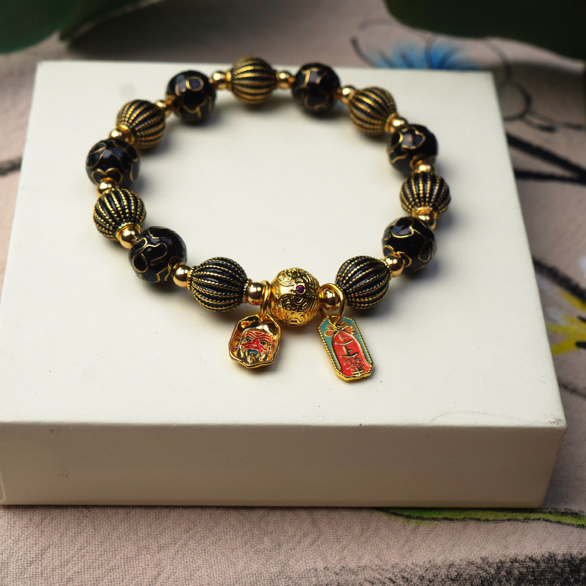 New Cloisonne cloisonne beaded bracelet, alloy striped ceramic vintage women's bracelet, cultural and artistic accessories