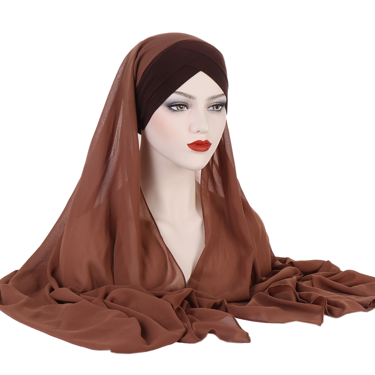 New convenient chiffon headscarf, suitable for all seasons, plain chiffon scarf, women's forehead cross headscarf cap