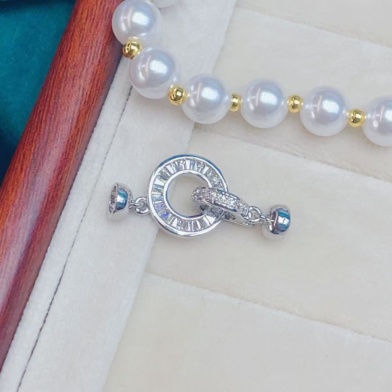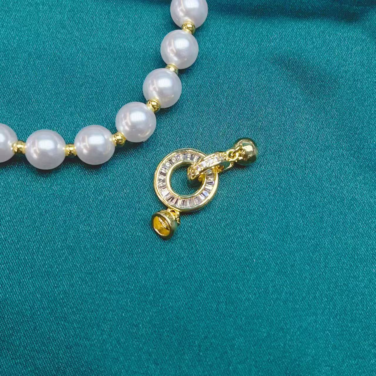 New copper-plated real gold bow pearl buckle DIY accessory, round sweater chain link, end buckle