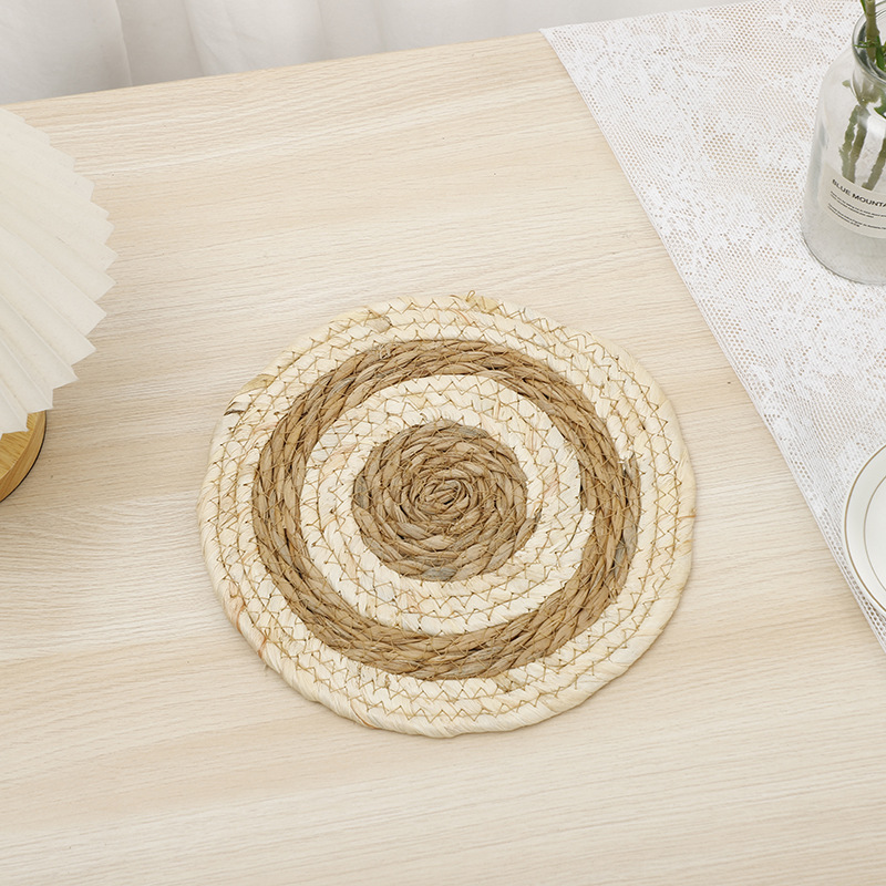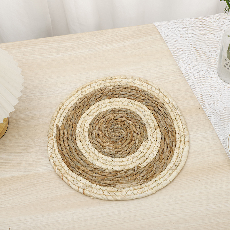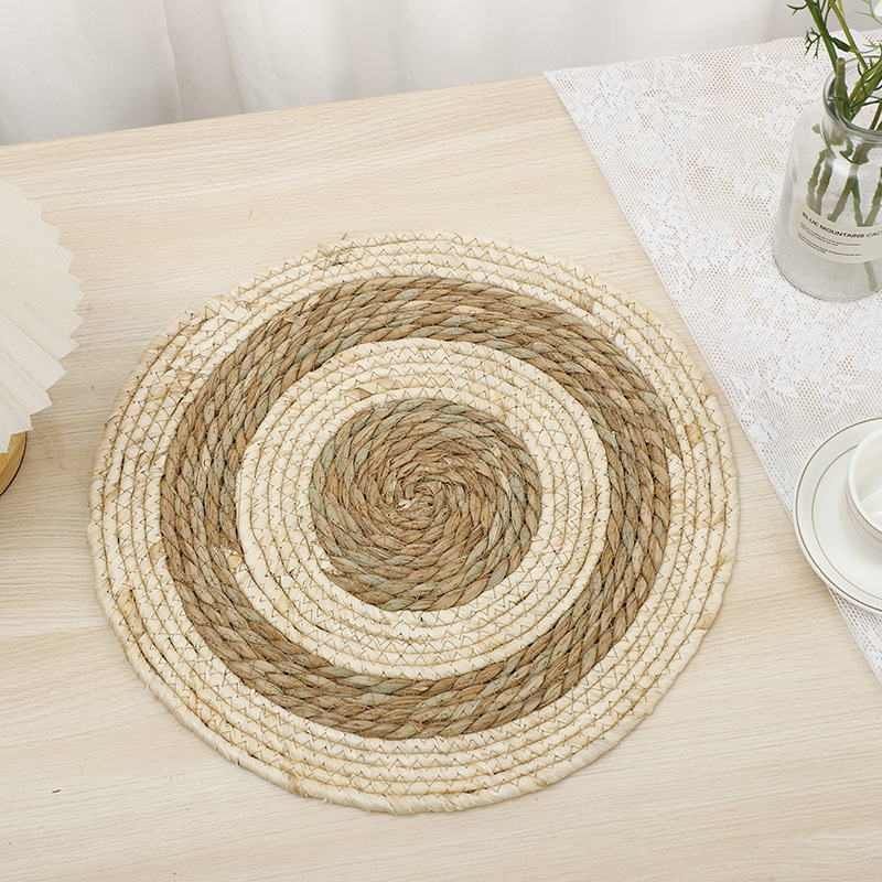 New corn rope woven placemats, grey cloth strips with reinforced edges, cutlery and teacup MATS, home eco-friendly Western placemats