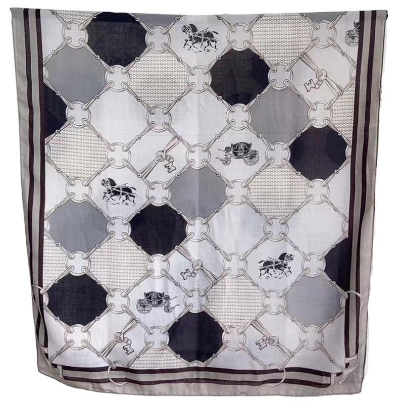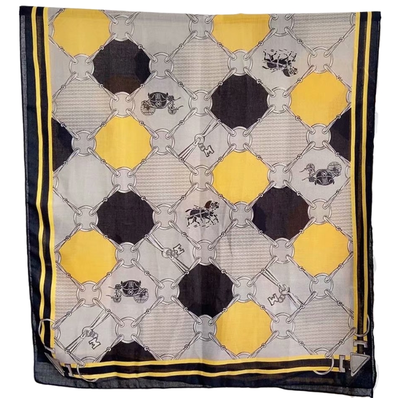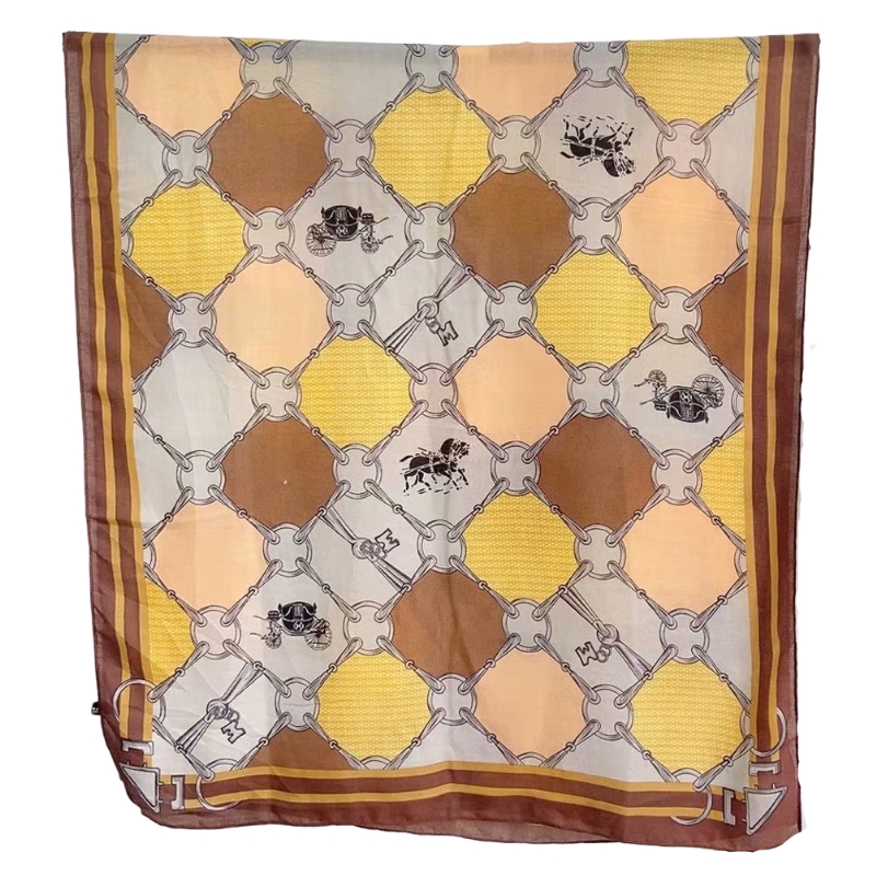 New cotton and linen scarf with carriage circle print, long style, women's warm silk scarf for autumn, winter and spring in stock