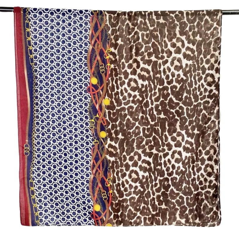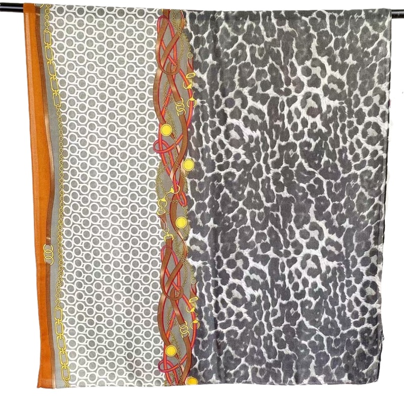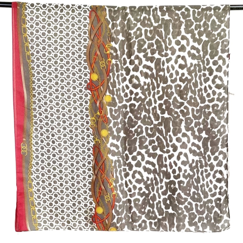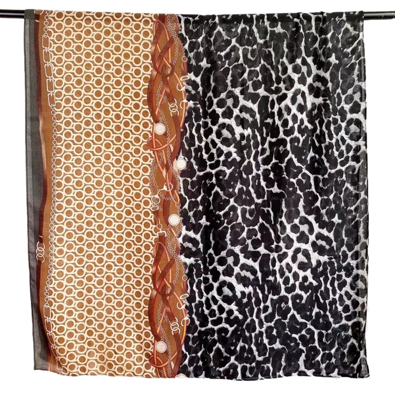 New cotton and linen scarves for women with leopard print and chain print, long and warm silk scarves for autumn and winter, factory direct sales