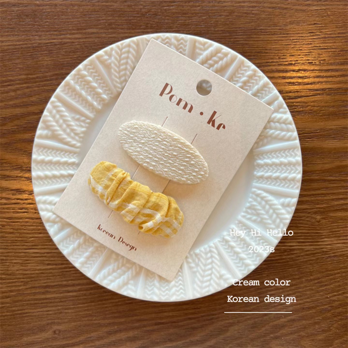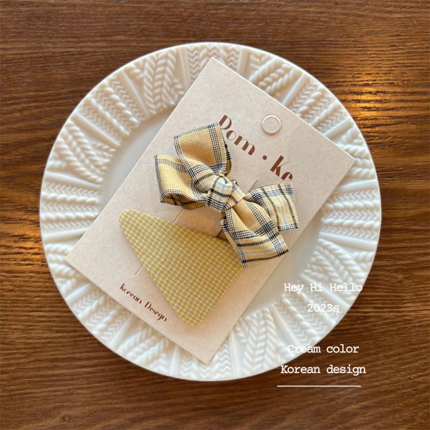New cream-colored fabric girls' hair accessories from South Korea, bow, broken hair clips, checkered solid color bb clips, headwear and hair clips