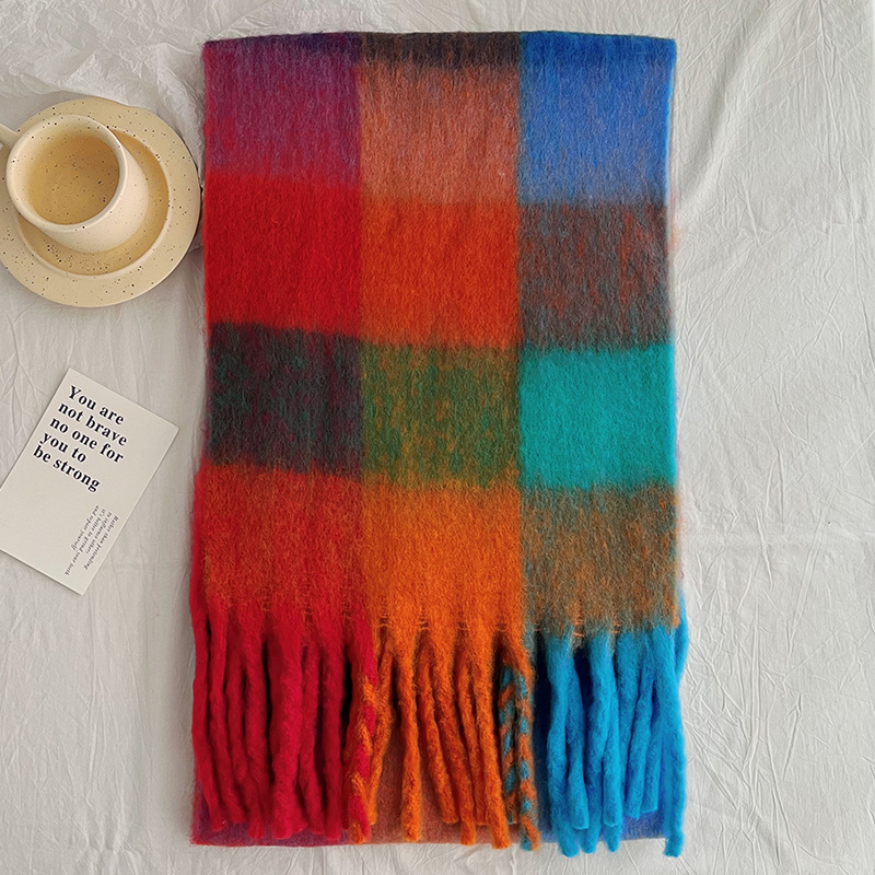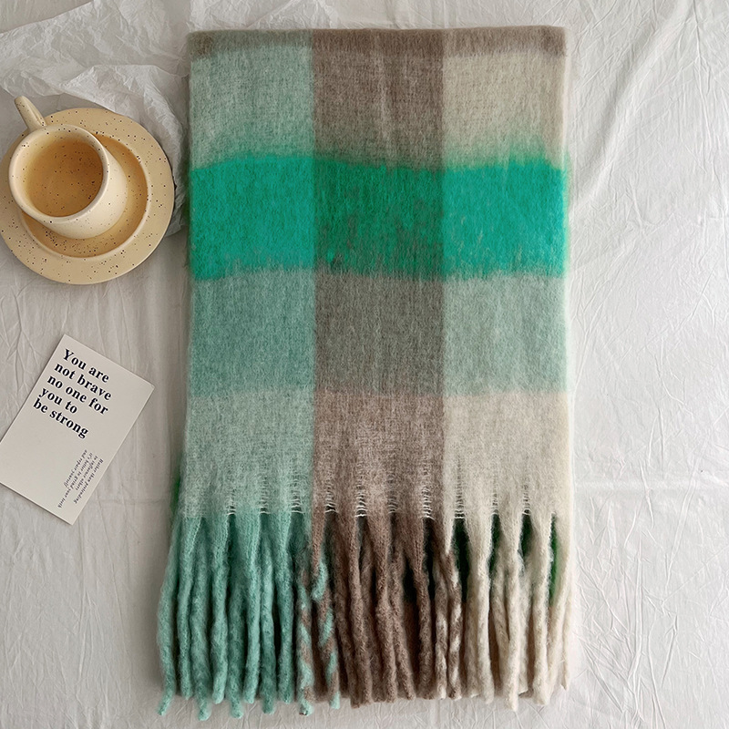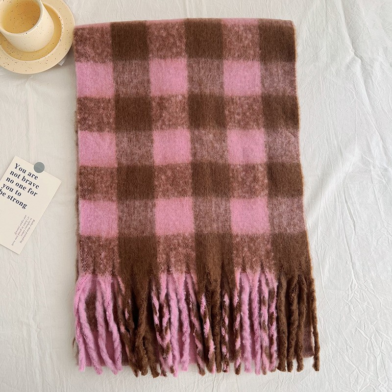 New cross-border checkered scarf for women, Nordic autumn and winter, soft and warm, with a contrasting color checkered pattern and a shawl scarf