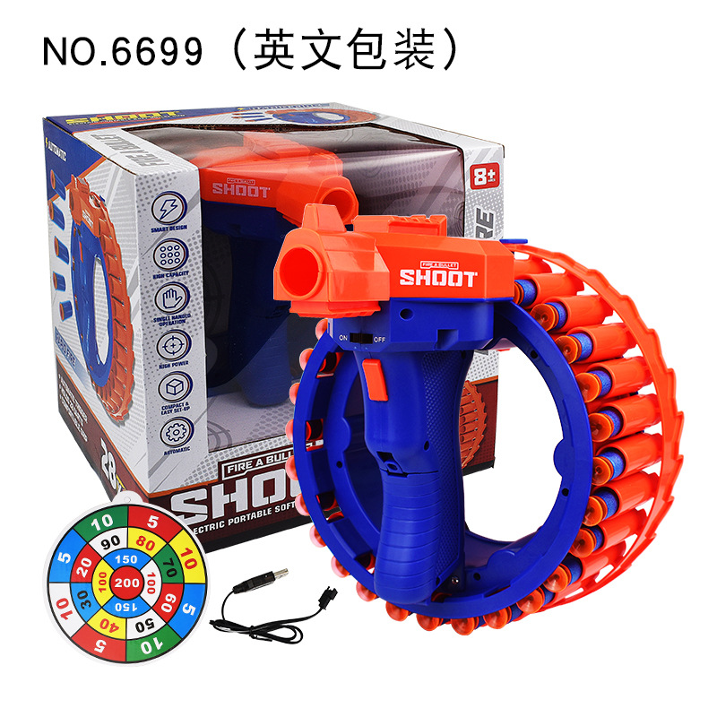 New cross-border children's electric hand ring rotating soft bullet gun, 28-round EVA sponge bullet parent-child shooting toy gun