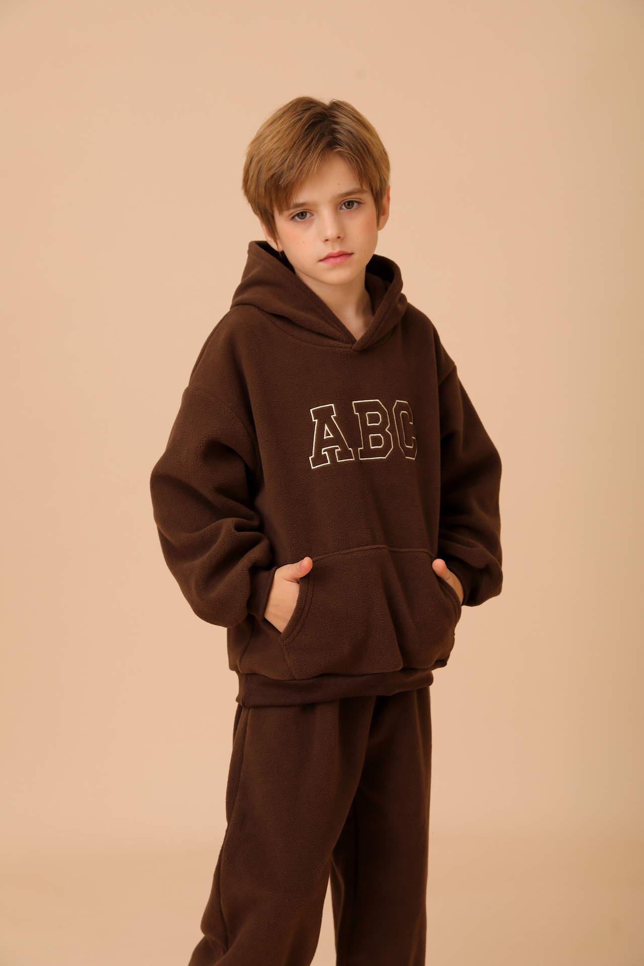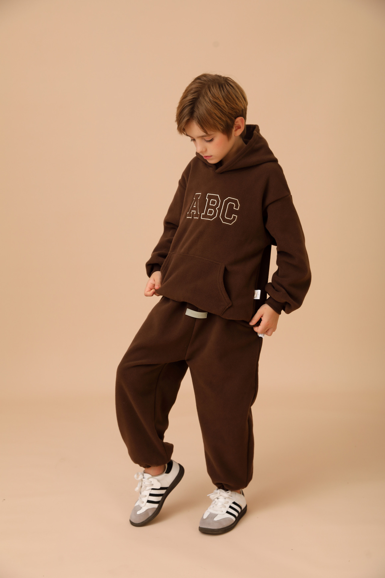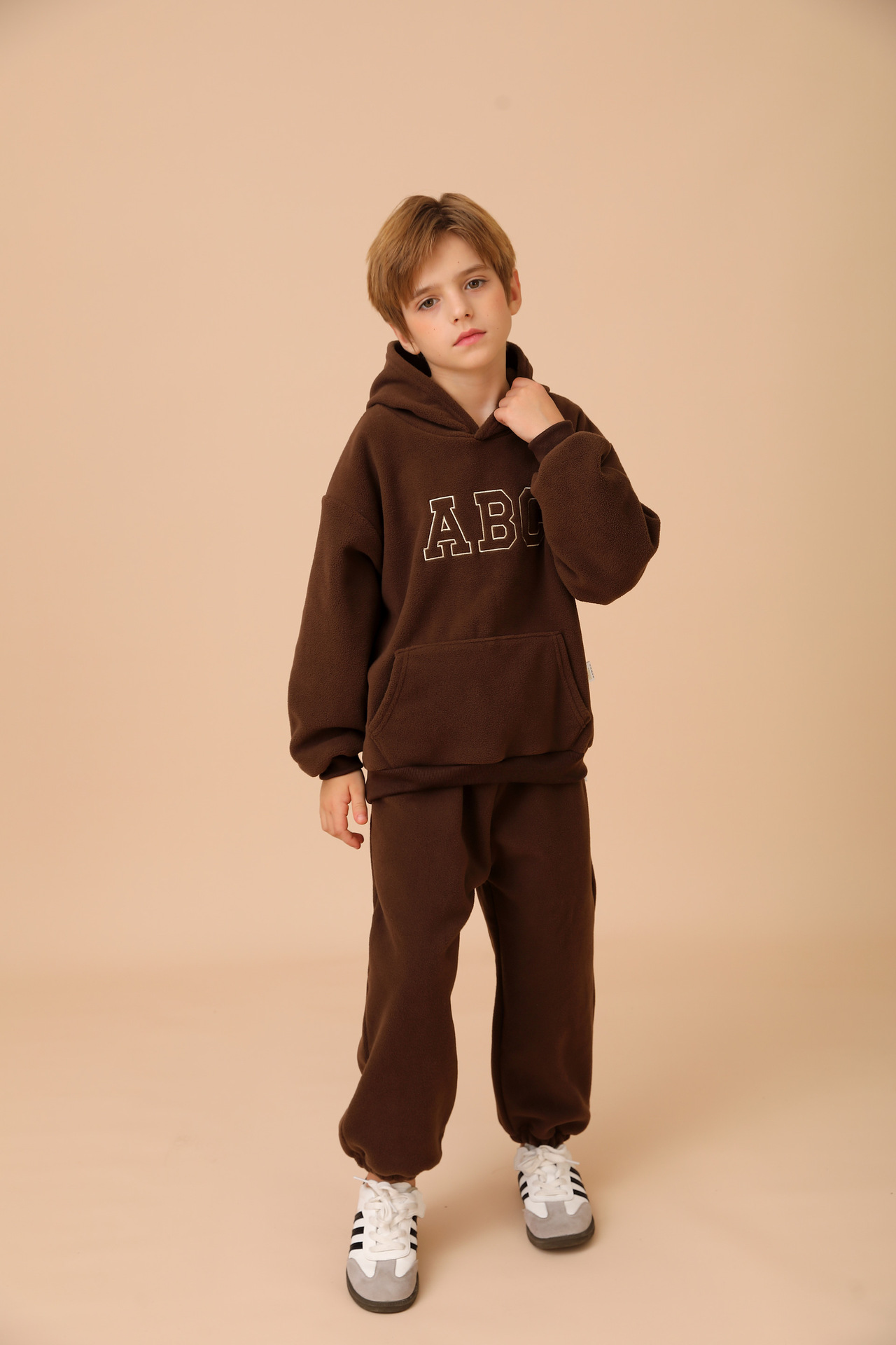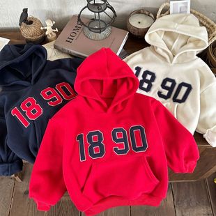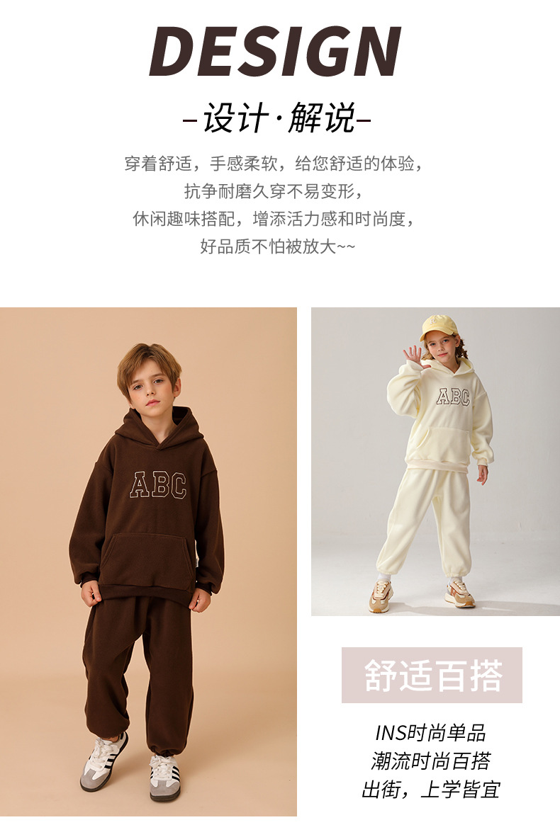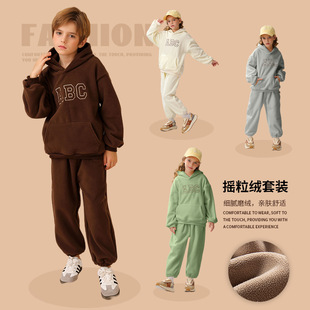 New cross-border children's hooded fleece pullover ABC Korean version children's clothing for boys and girls casual hoodie set