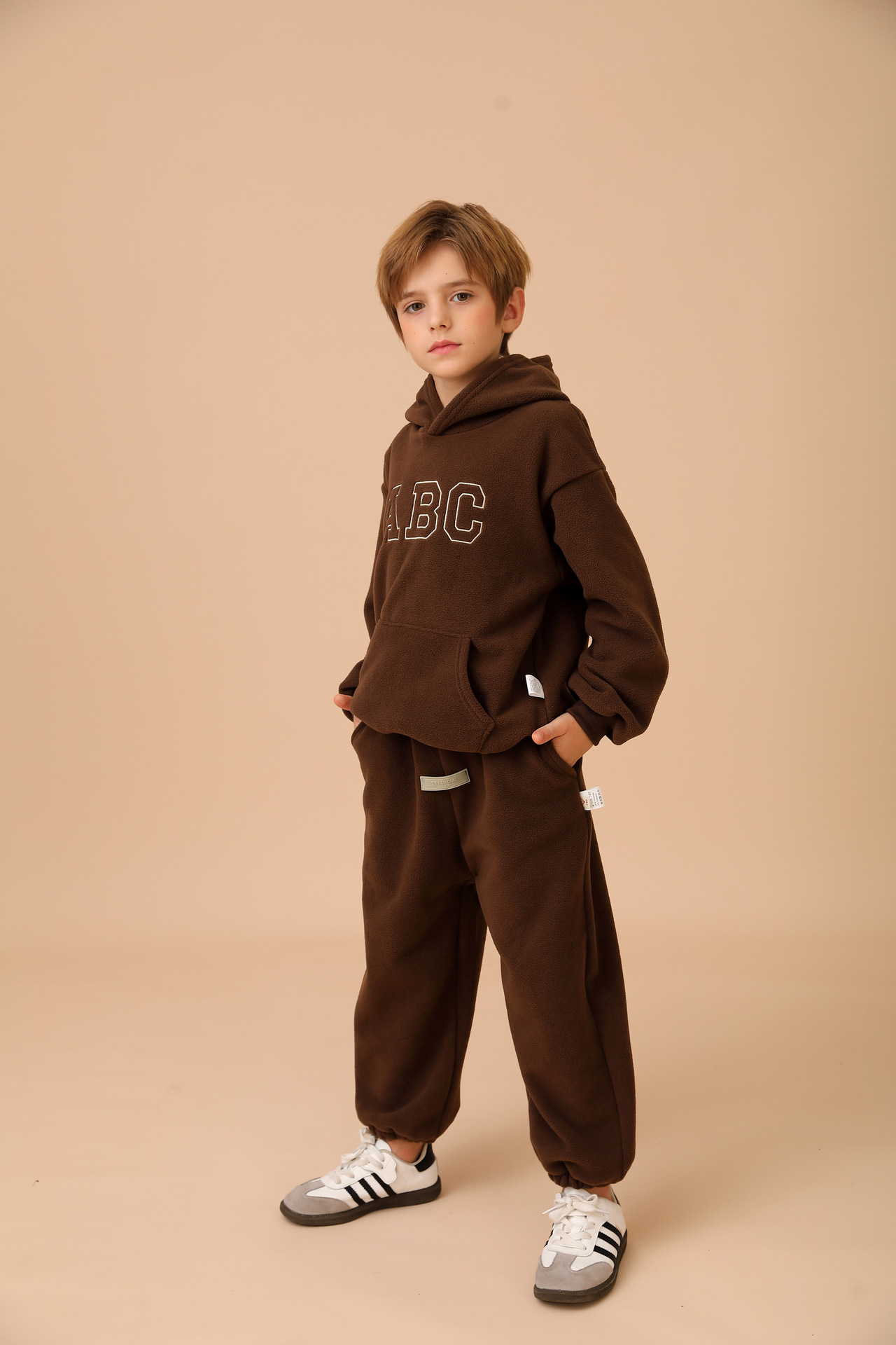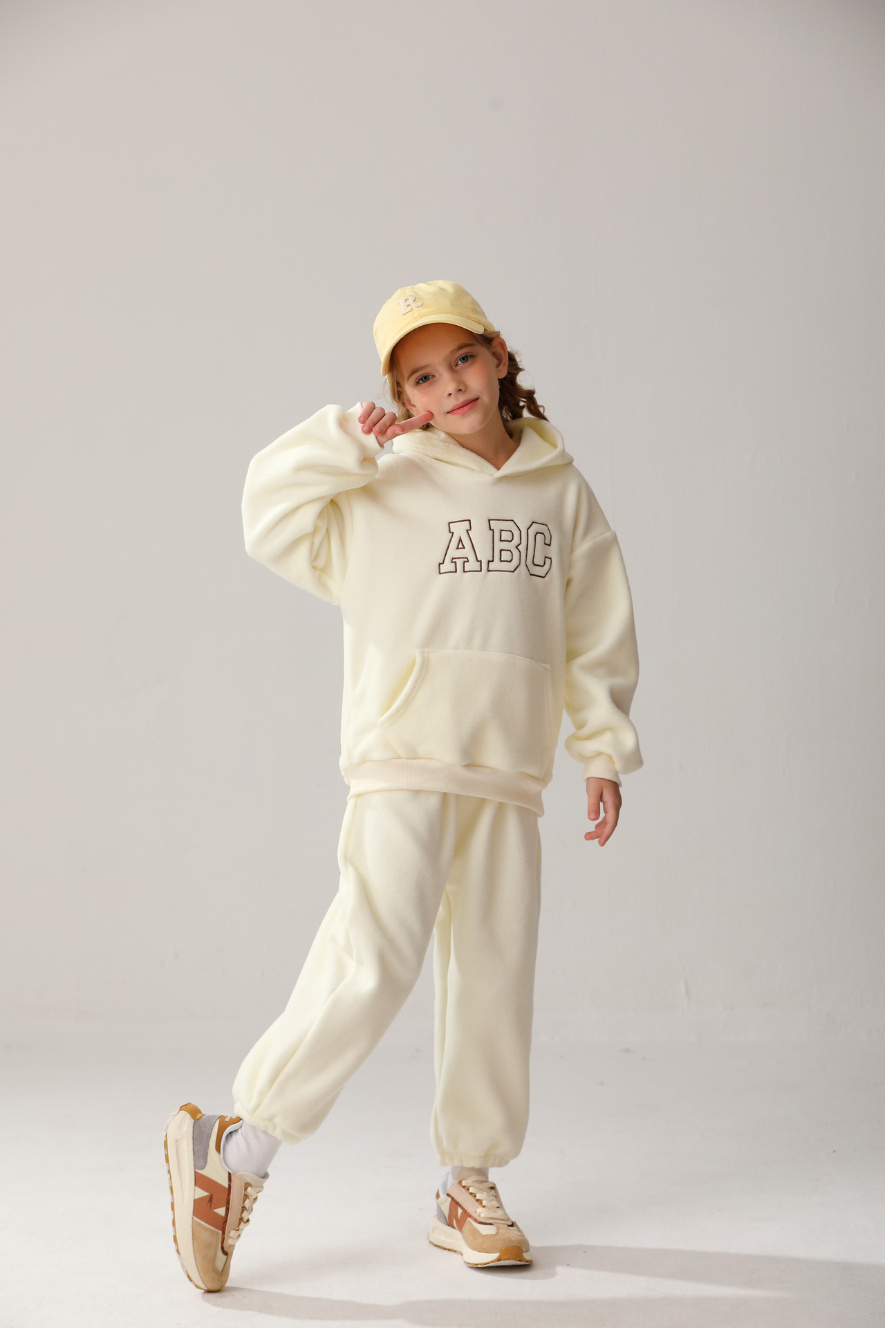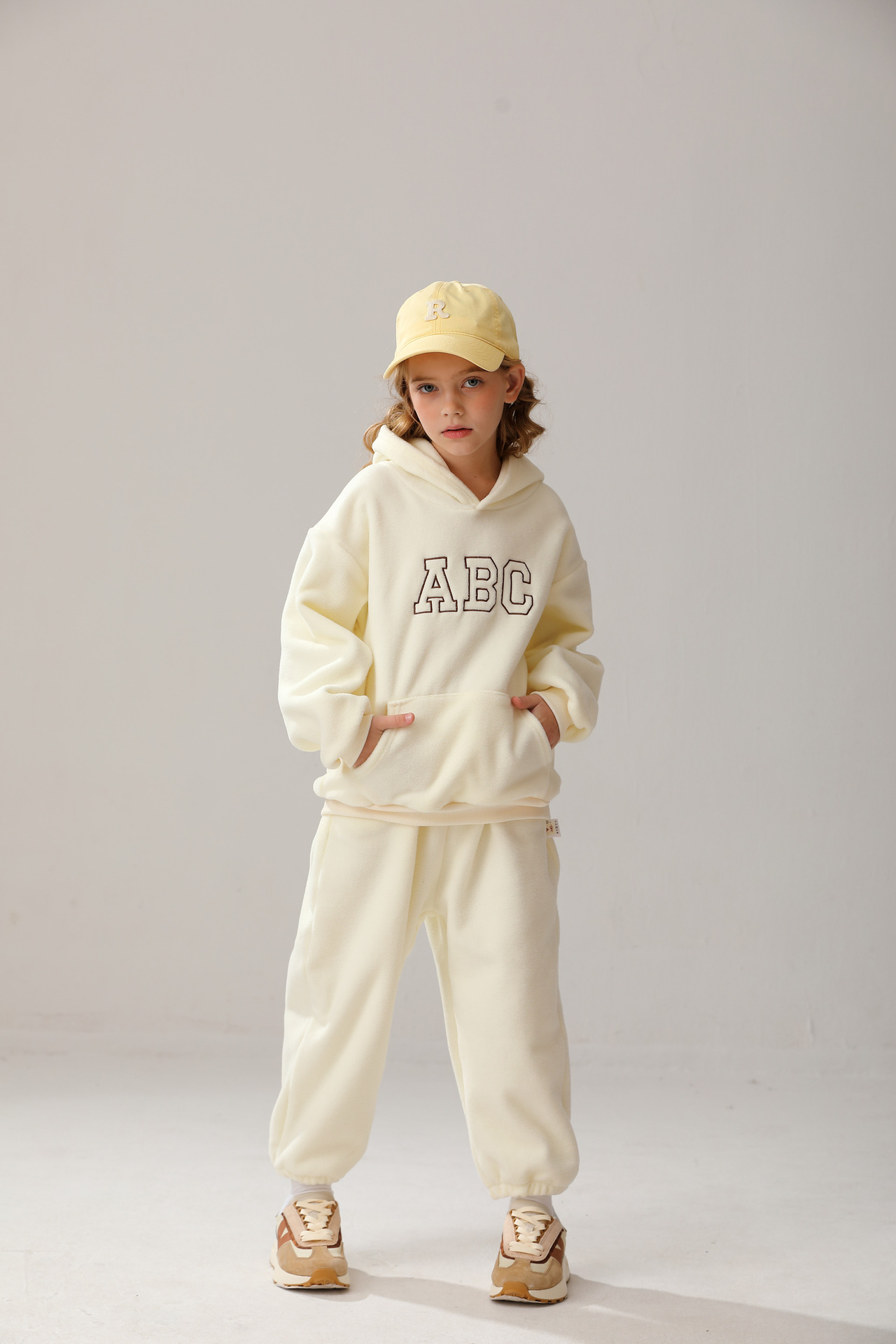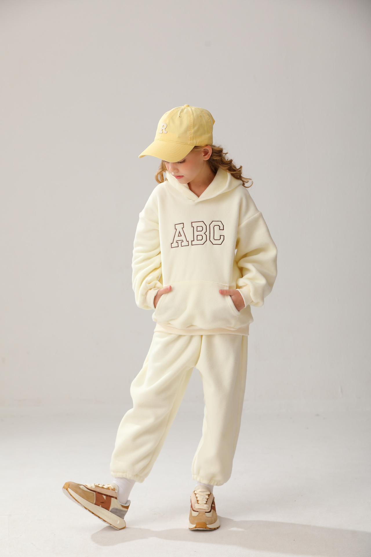 New cross-border children's hooded fleece pullover ABC Korean version children's clothing for boys and girls casual hoodie set