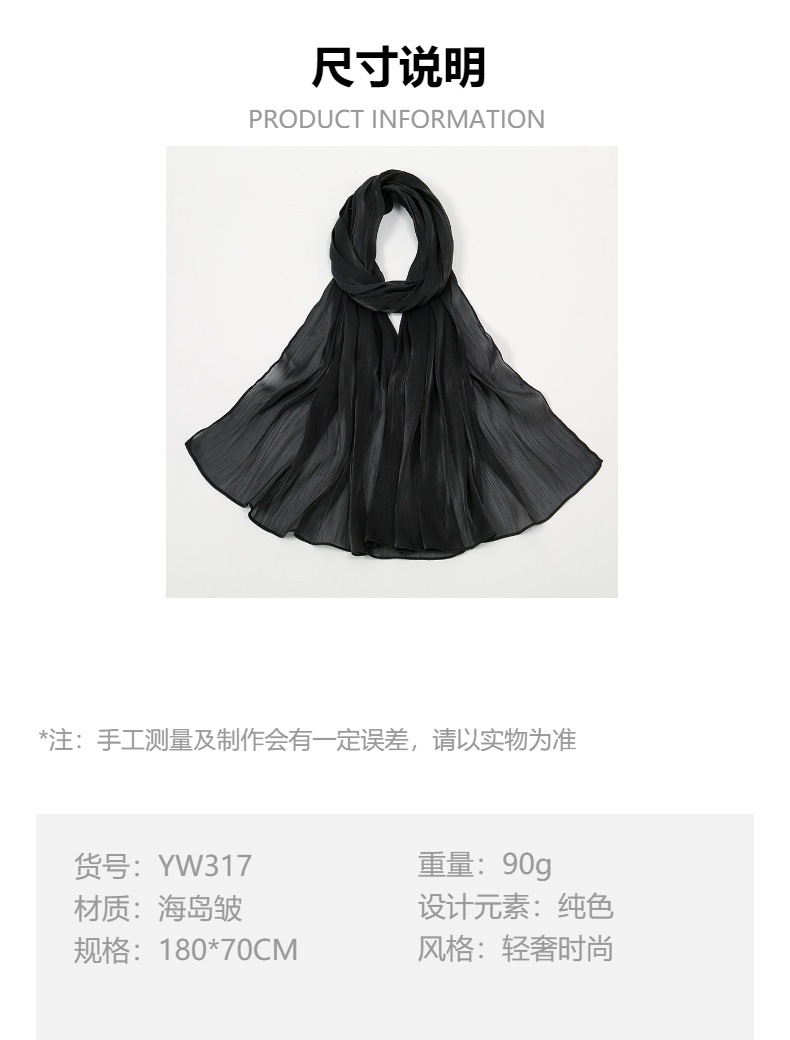 New cross-border cool, breathable, shiny silk chiffon island wrinkled long scarf in solid color, simple Malay and Indonesian women's headscarf
