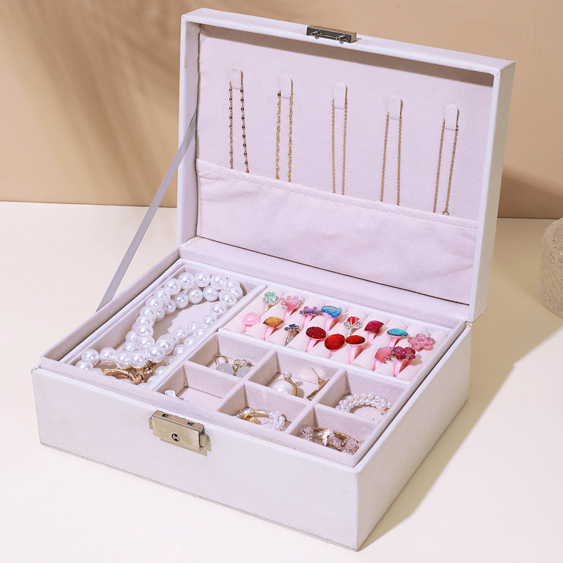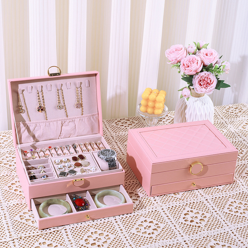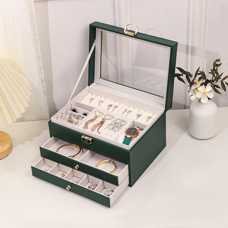 New cross-border diamond-shaped jewelry box, retro dark green velvet hand and accessory box, large-capacity three-layer storage box