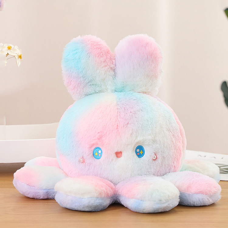 New cross-border double-sided octopus rabbit plush toy, cute tie-dyed and flipable rabbit doll pillow