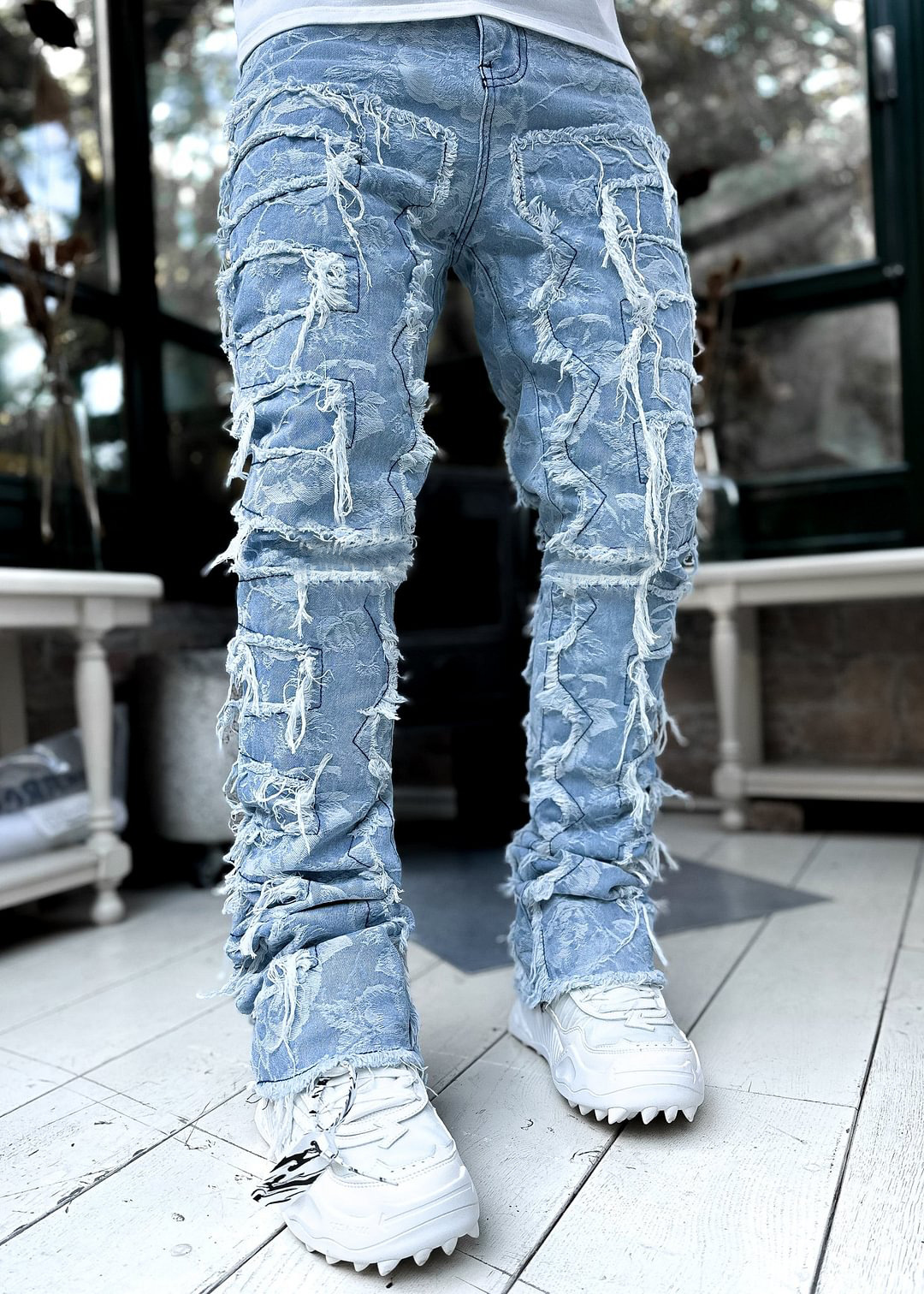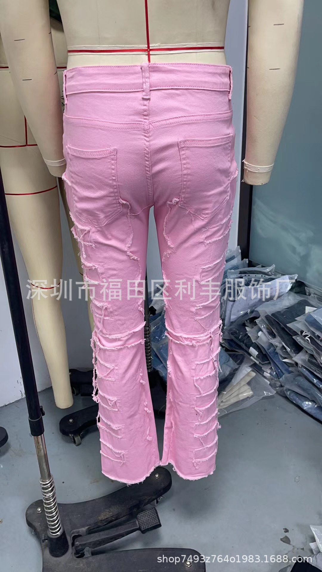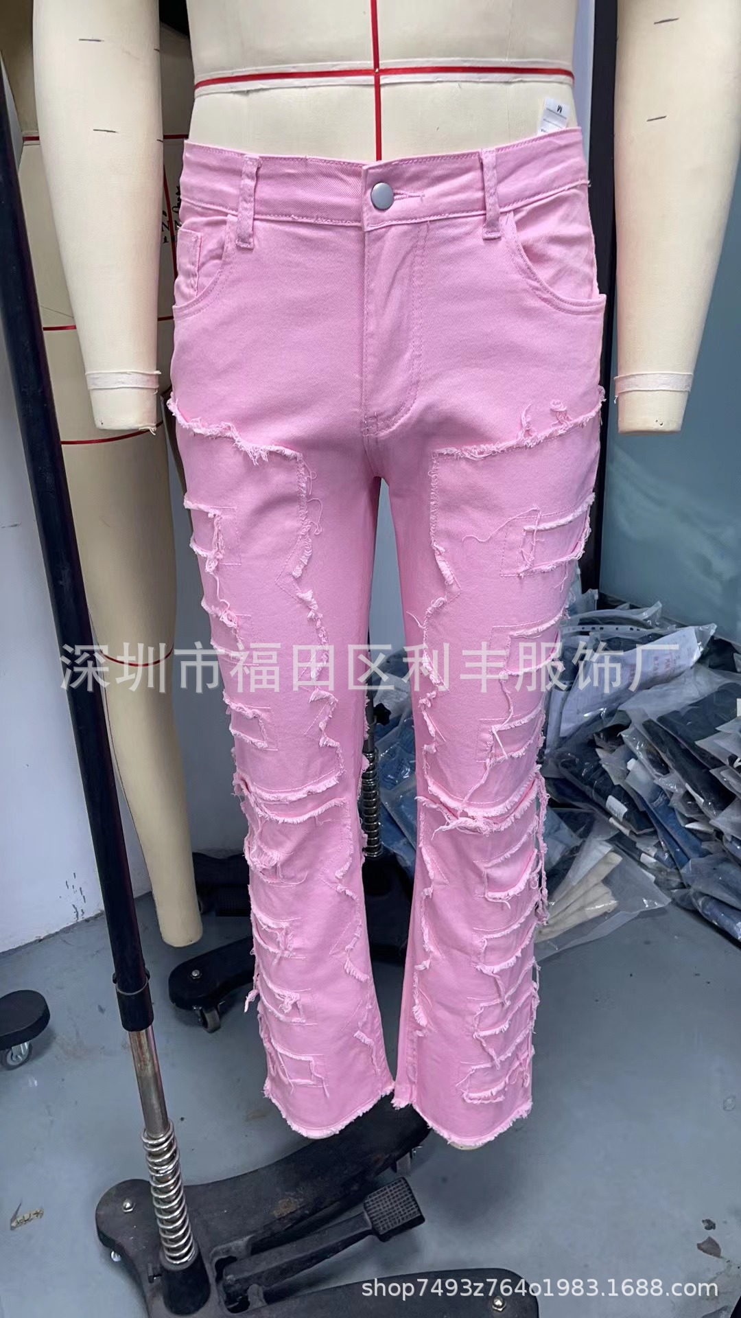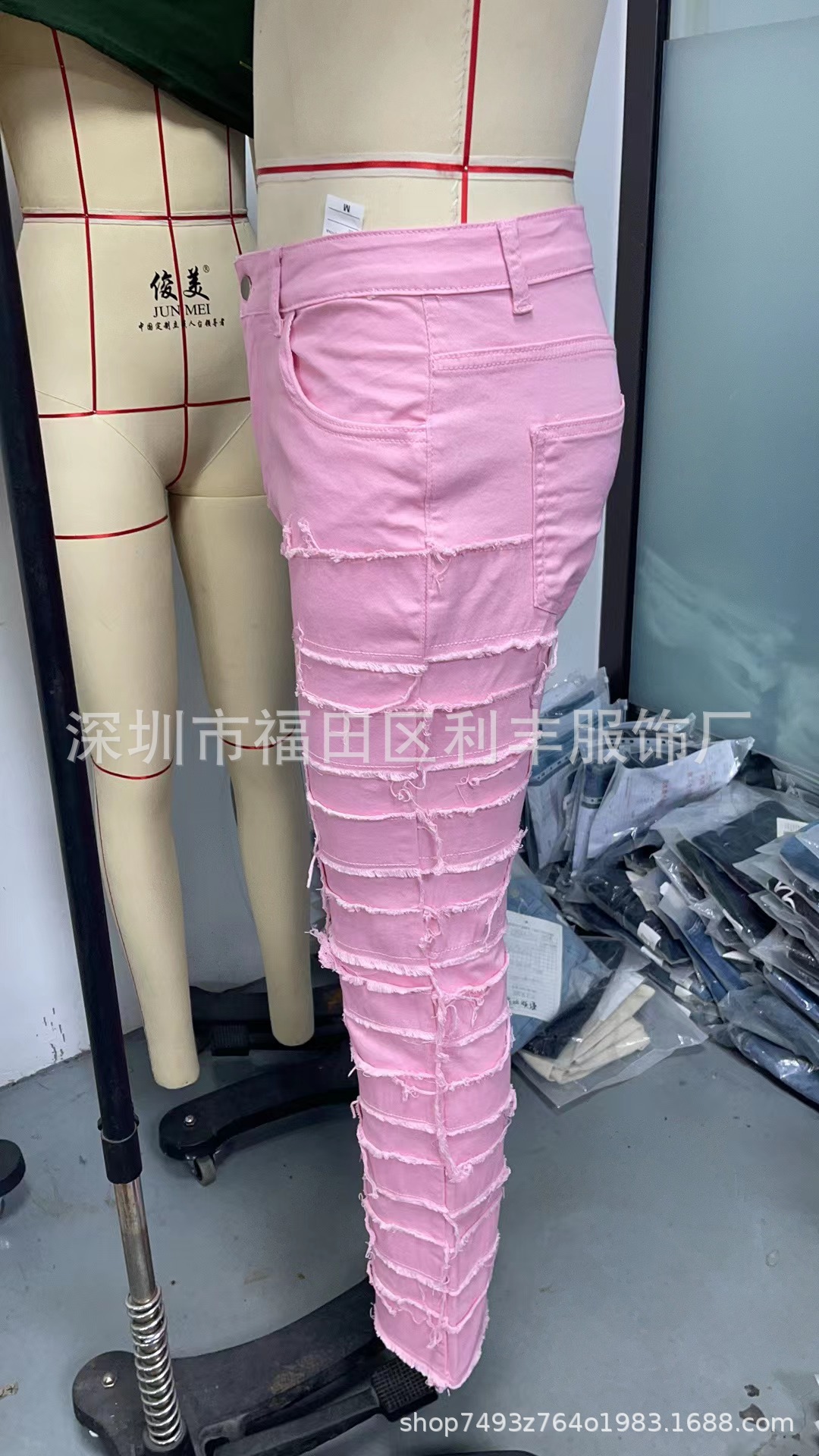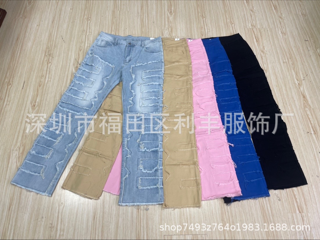 New cross-border men's denim straight-leg pants, a popular stretch patchwork denim straight-leg pants in European and American street fashion on Instagram