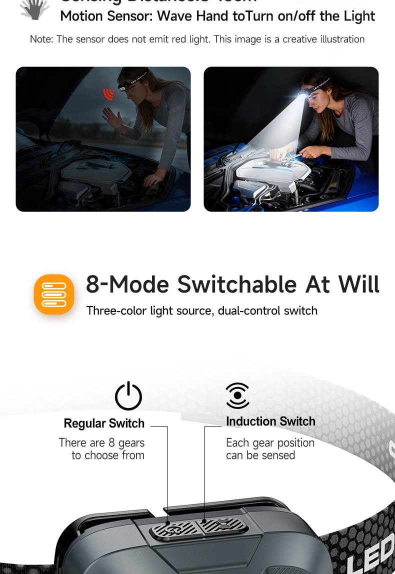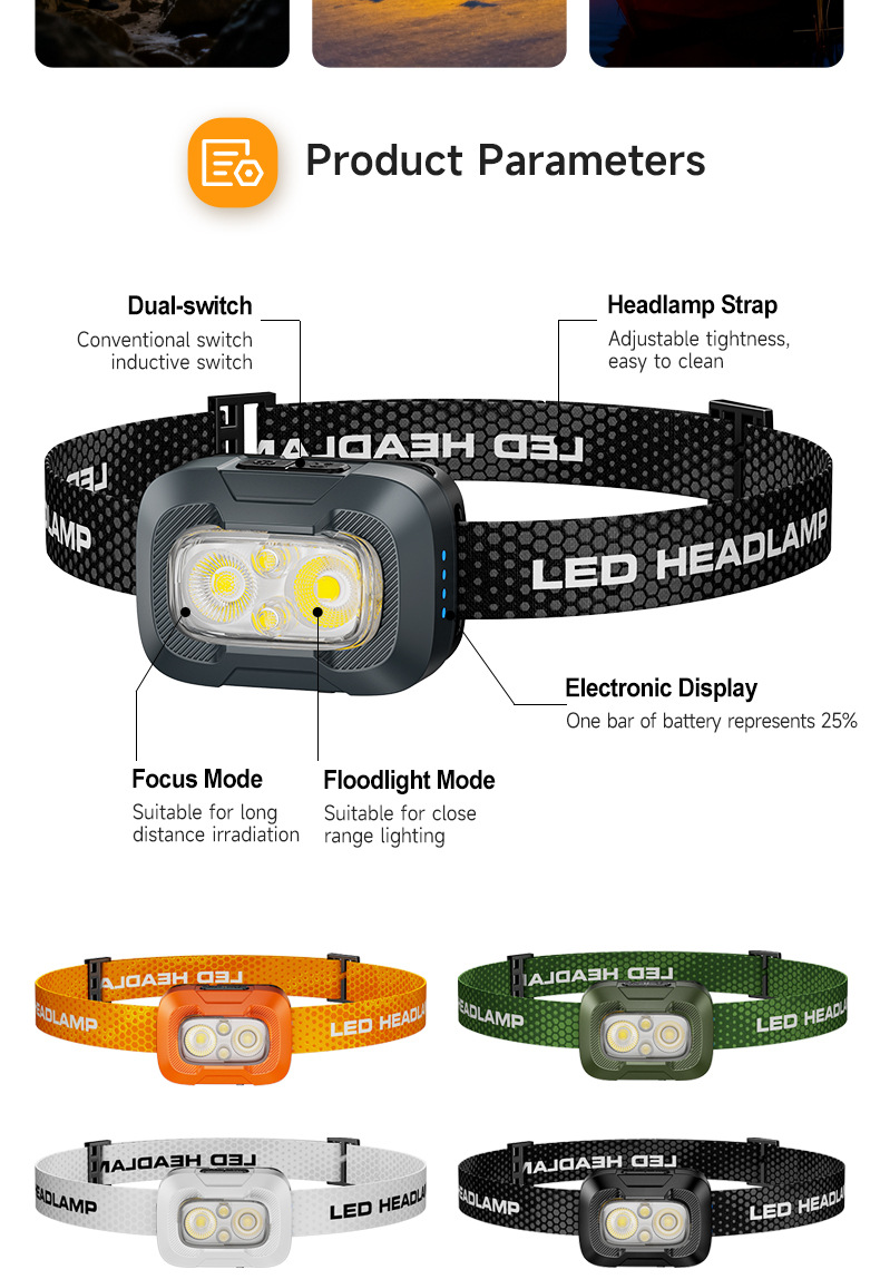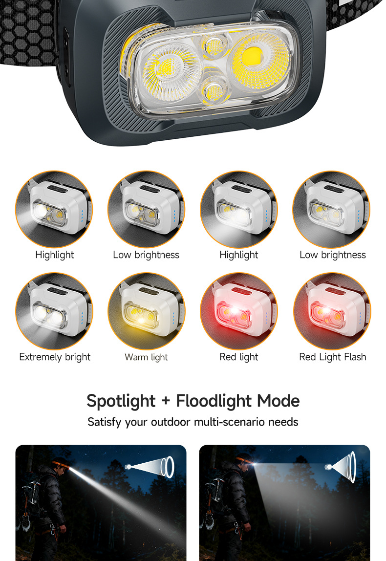 New cross-border mini headlamp, long-lasting, multi-color temperature, ultra-bright, head-mounted, lightweight, night running, outdoor mountaineering miner's lamp