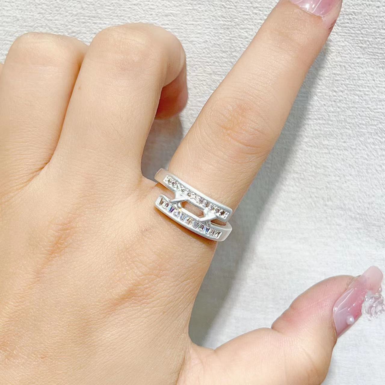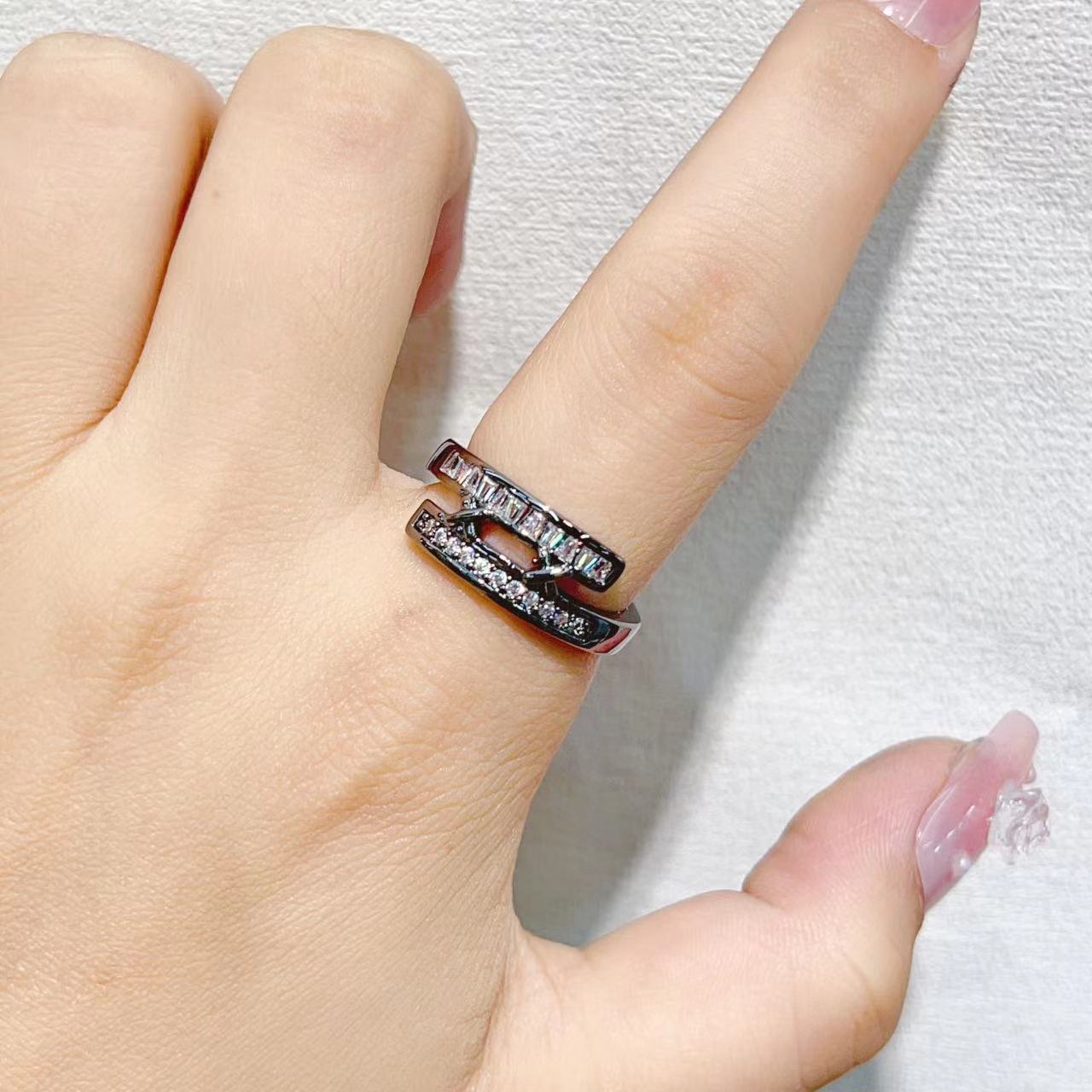 New cross-border ring from Europe and America, adjustable in size, shiny and fashionable, double-row T-square women's ring, copper zircon electroplated 18K