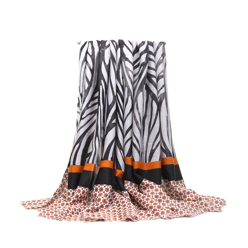 New cross-border satin watermark branch scarf for autumn and winter, women's European and American export printed shawl, warm and fashionable silk scarf