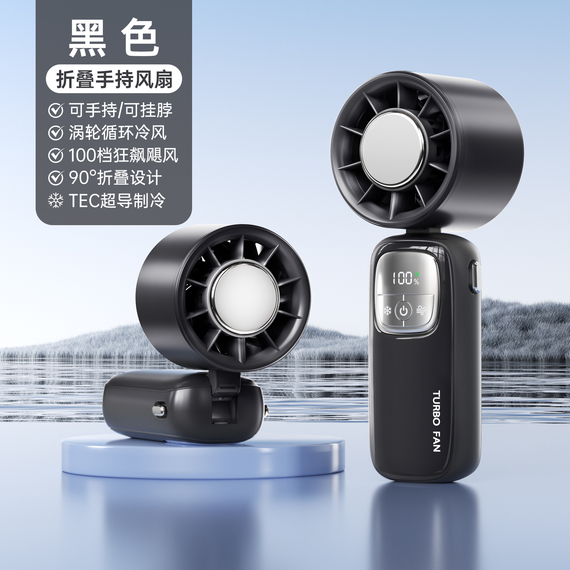 New cross-border semiconductor cold compress high-speed handheld fan, portable usb digital display folding outdoor small fan