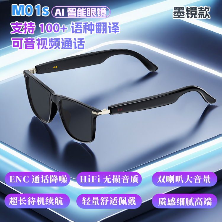 New cross-border UV-resistant sunglasses, ai translation, smart glasses, open headphones, music Bluetooth glasses, full frame, black hardware frame