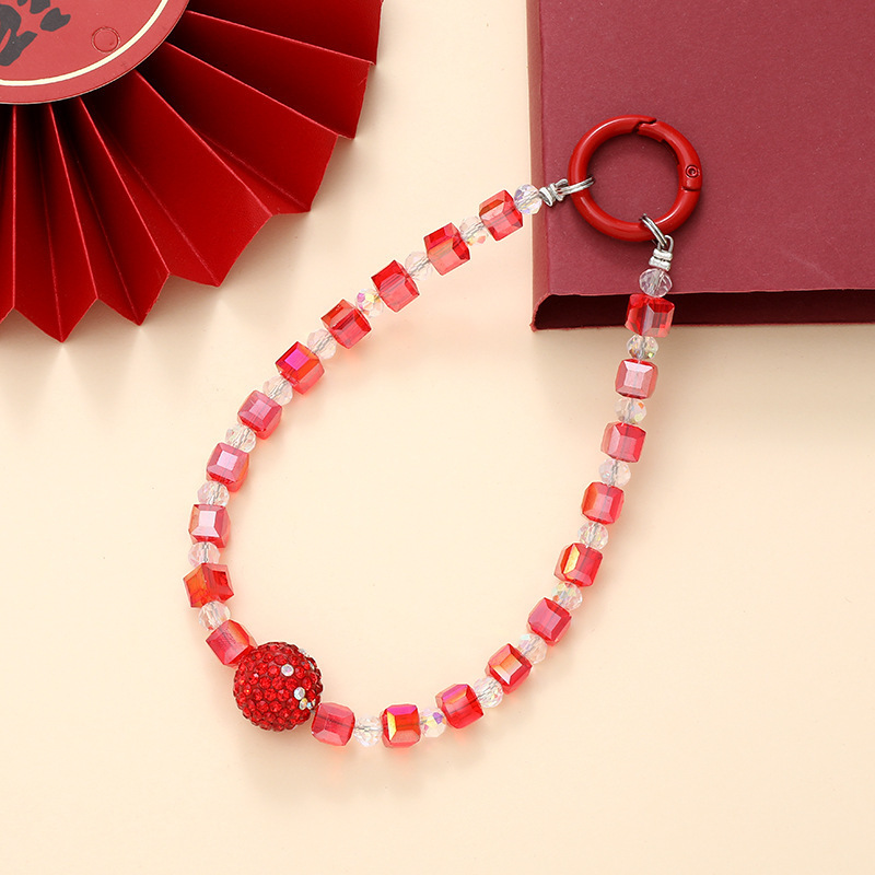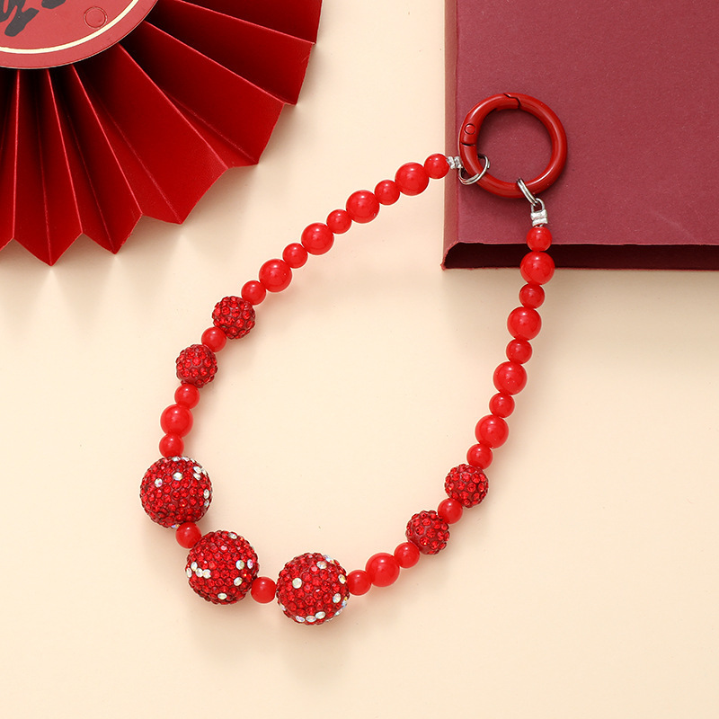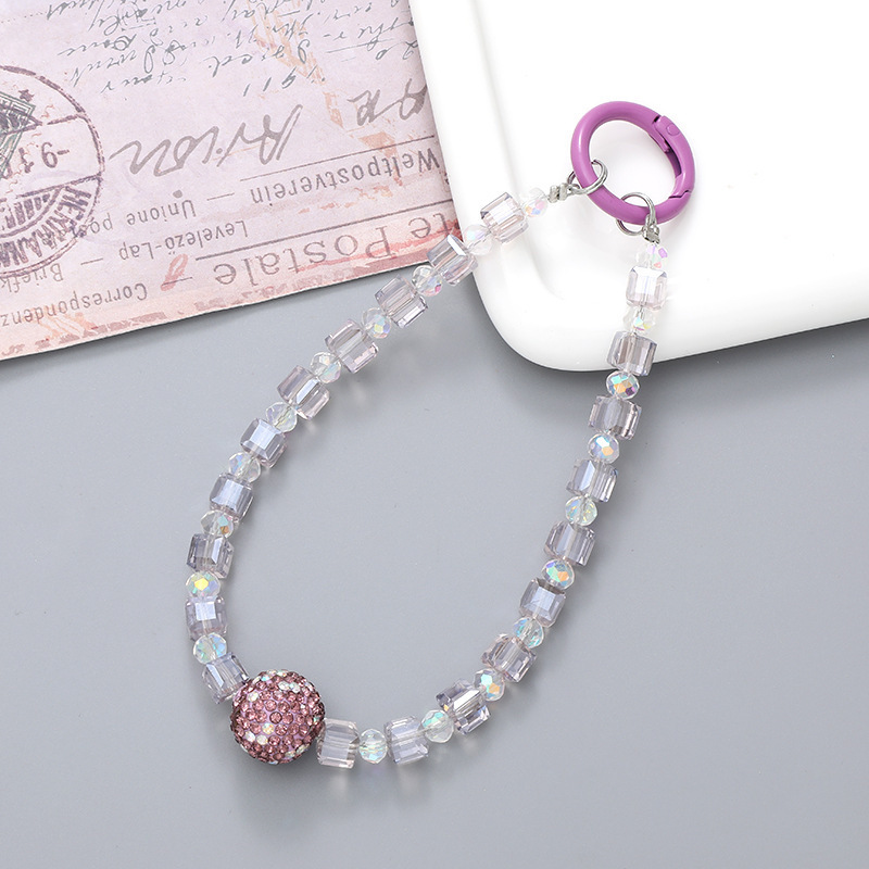 K4446 round crystal mobile phone chain in color (with a hanging tag