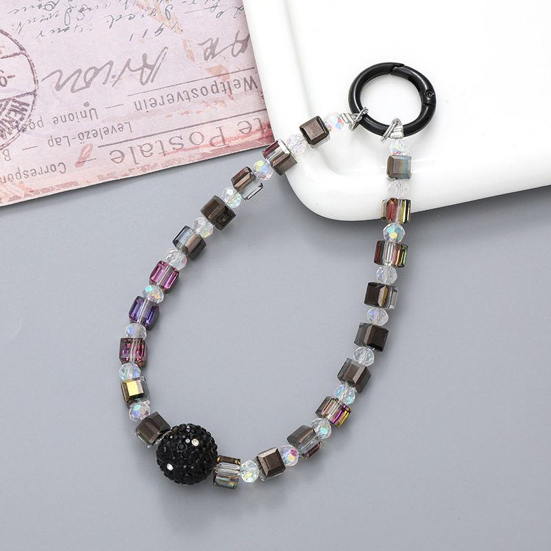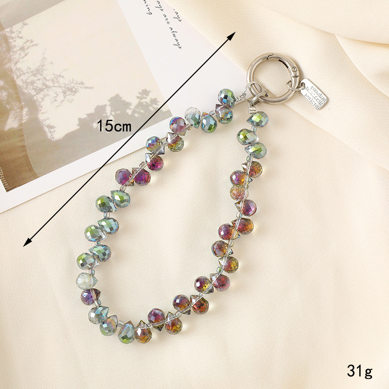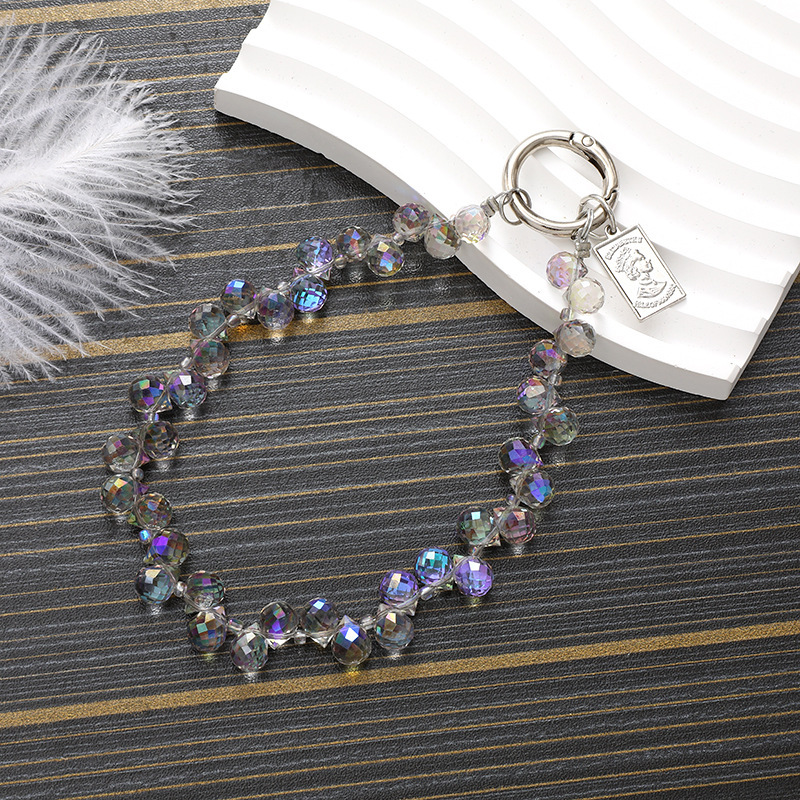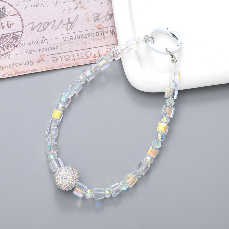 K4444 round crystal mobile phone chain in AB color (with a tag attached)