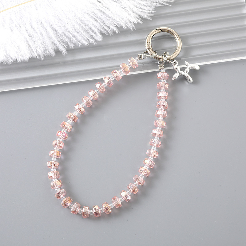 K4445 round crystal mobile phone chain in pink (with a tag)