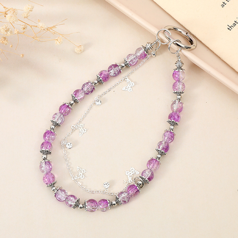 K4443 Round crystal mobile phone chain in purple (with a tag attached)