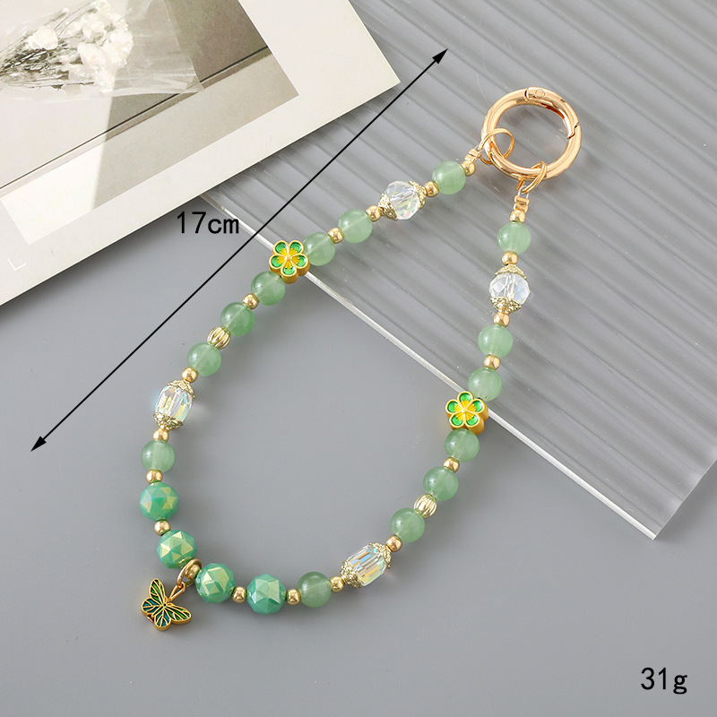 K3319 green gemstone bead pendant with butterflies
