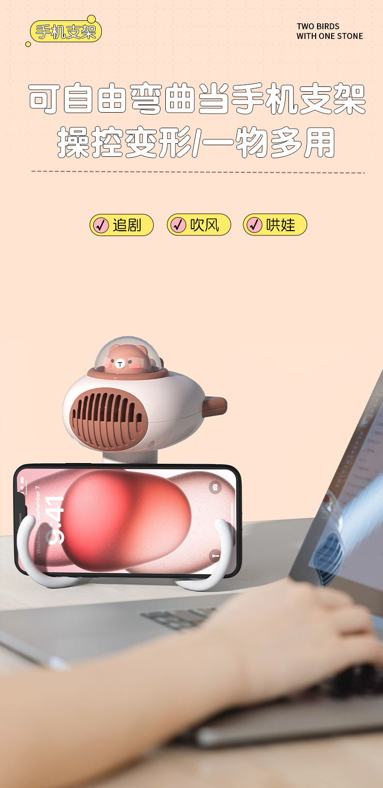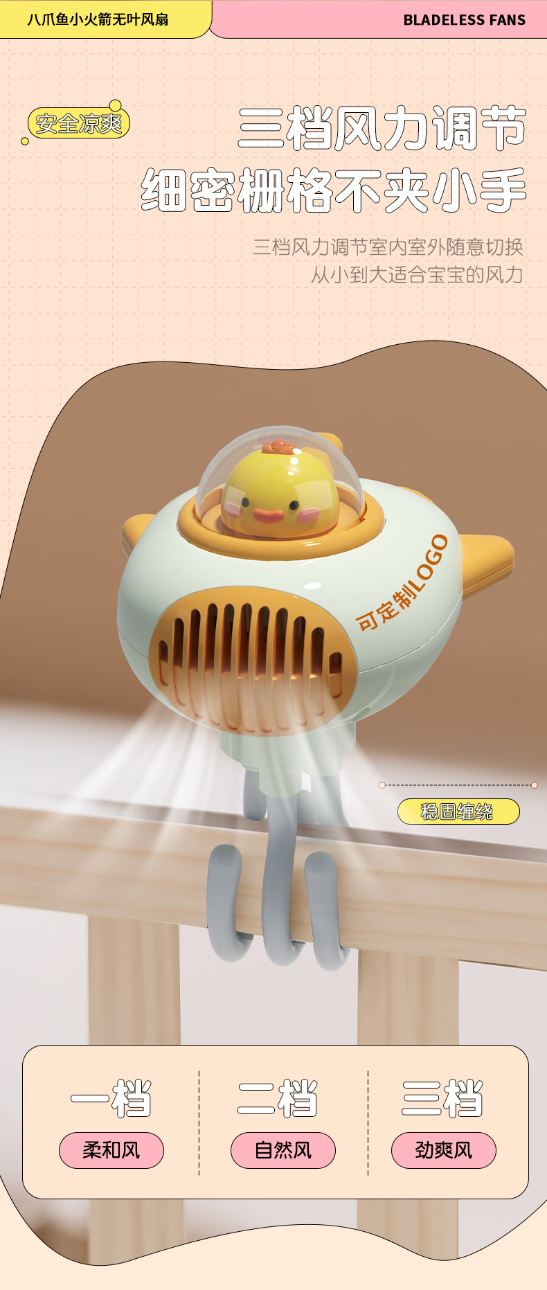 【 Product Name 】 : Cute Rocket Octopus Bladeless Fan