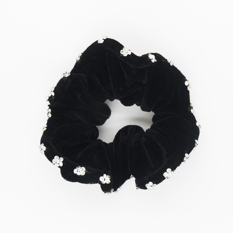 New diamond-encrusted velvet headwear with gold velvet and diamonds, updo, diamond-encrusted velvet fabric large intestine circle, Korean-style hair accessory