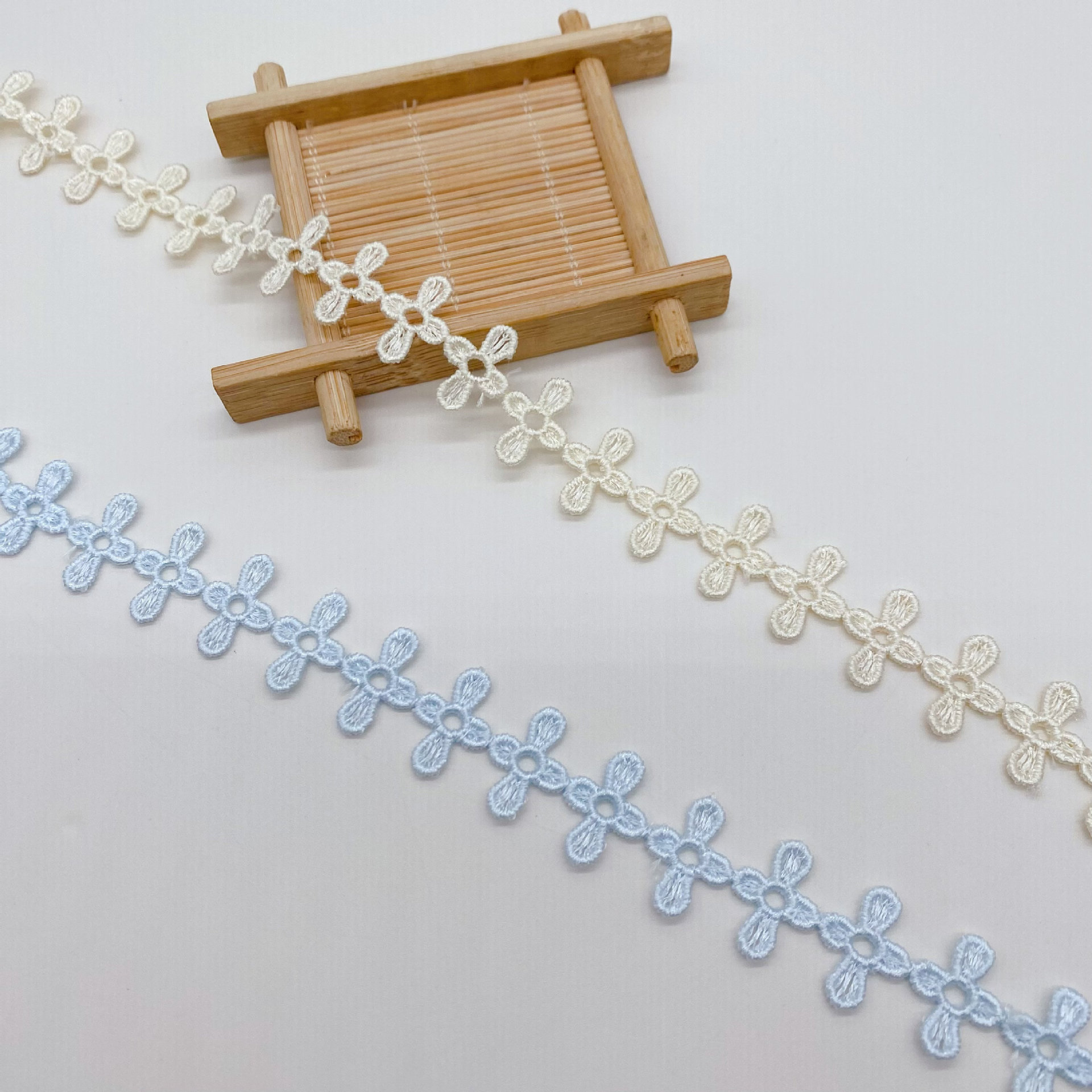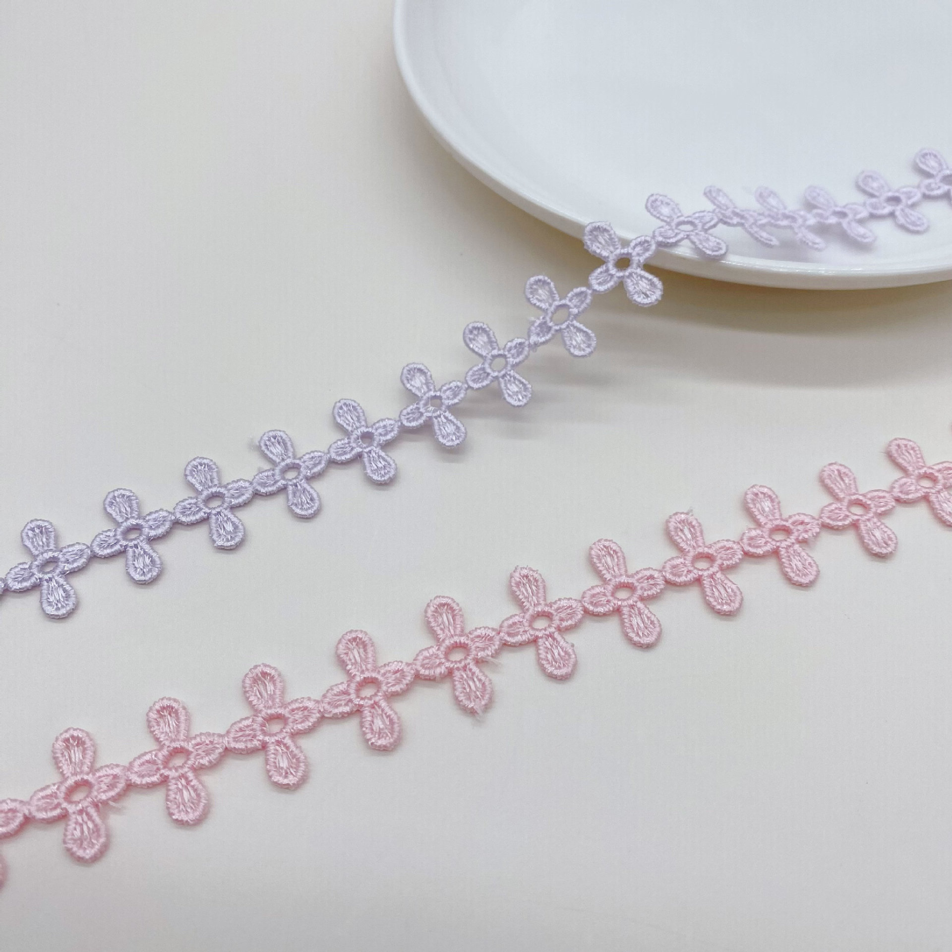 New embroidered lace, single-sided small barcode hollowed-out flower women's decoration, water-soluble polyester filament lace