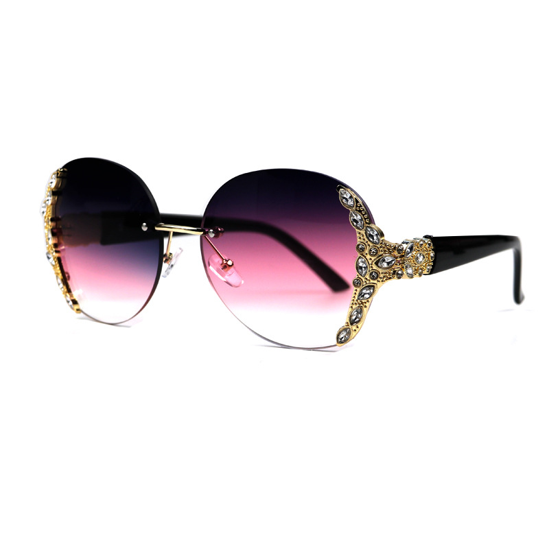 New European and American fashionable metal frameless diamond-encrusted personalized street style fashion show sunglasses, women's UV protection sunglasses, and fashionable and trendy accessories