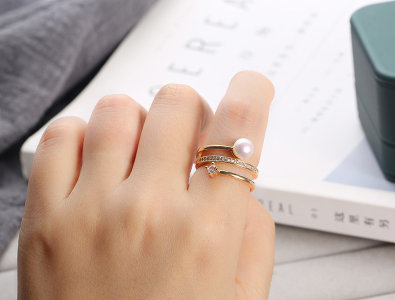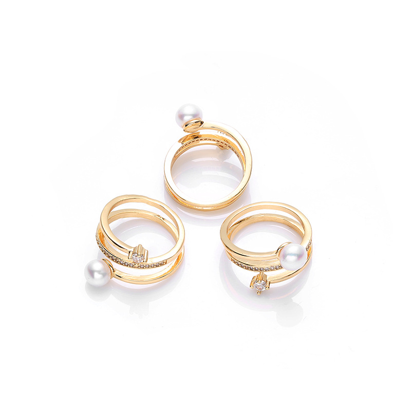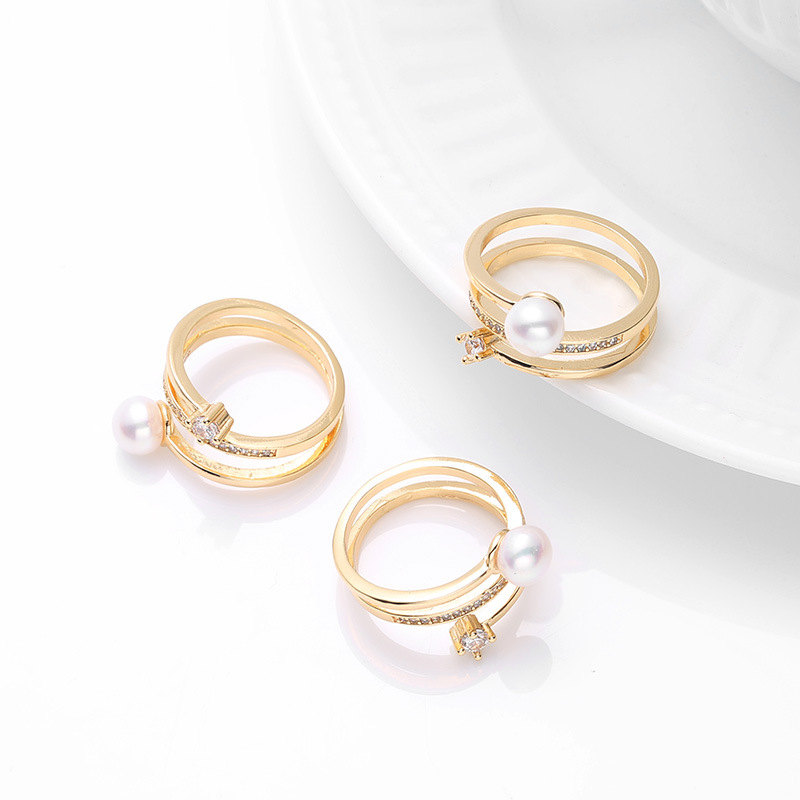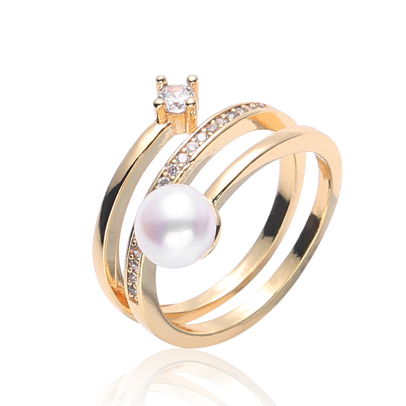 New European and American style 14K gold multi-layer diamond three-dimensional pearl ring for women's jewelry, elegant and resonant