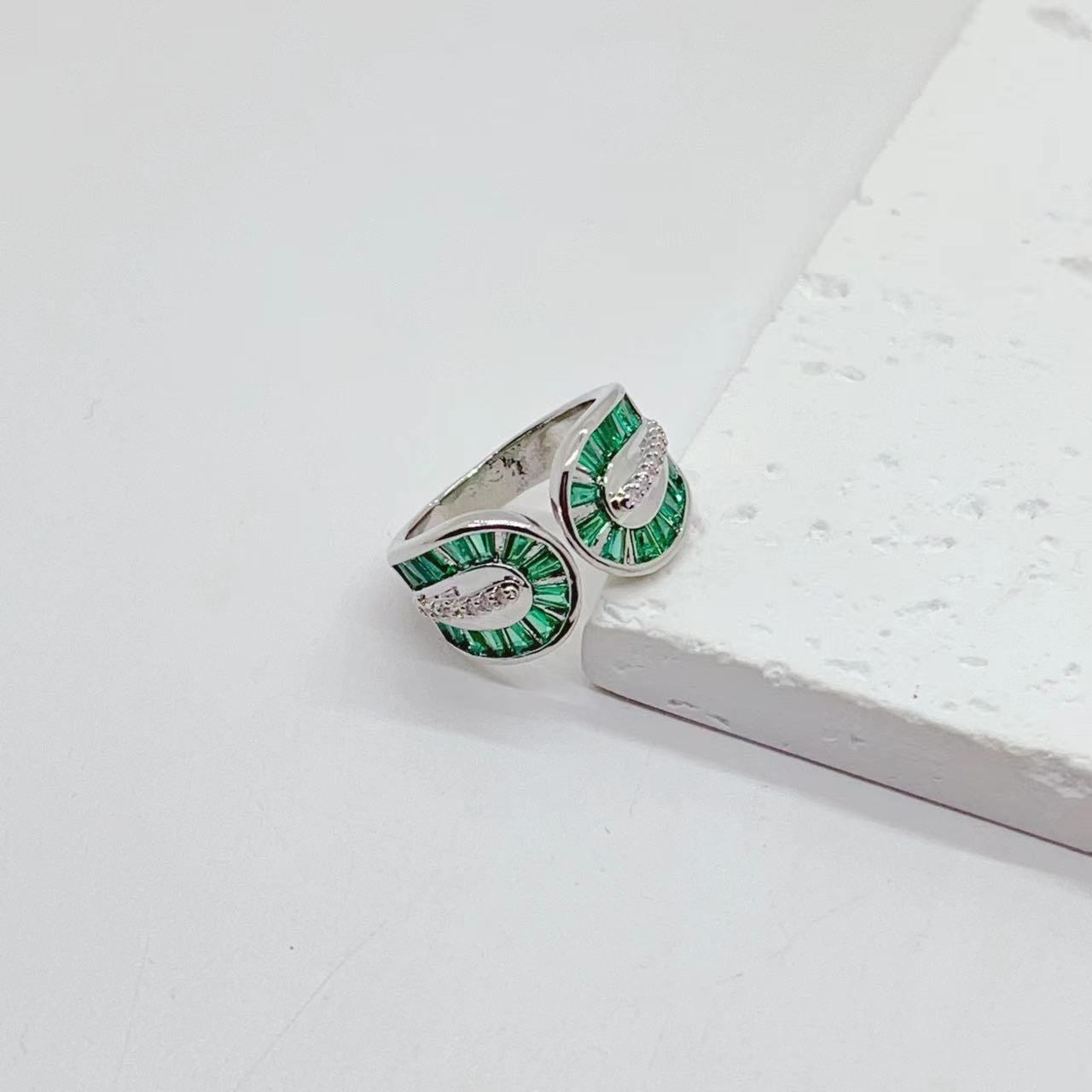 New European and American style open-mouth ring, grand and exaggerated geometric ring, copper zircon electroplated 18K color retention, multiple colors to choose from