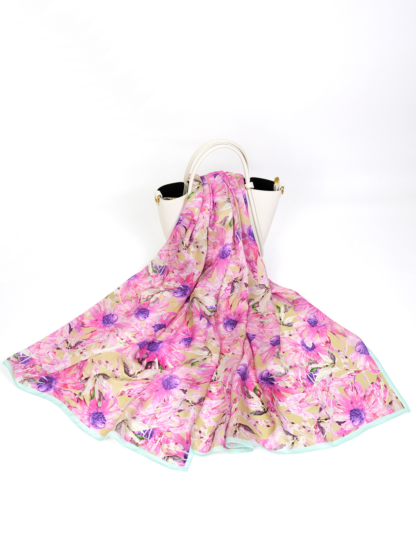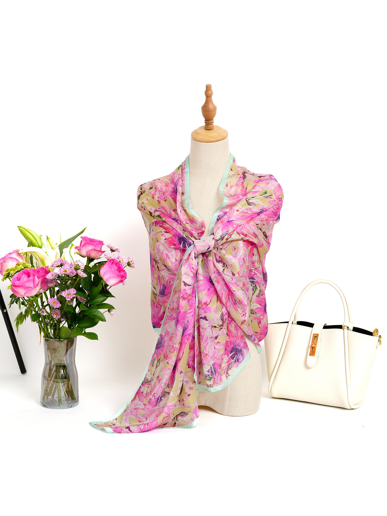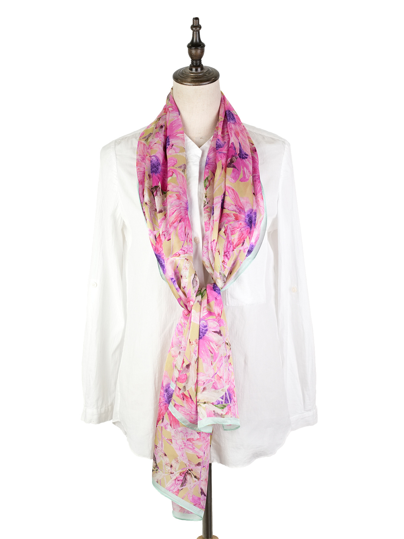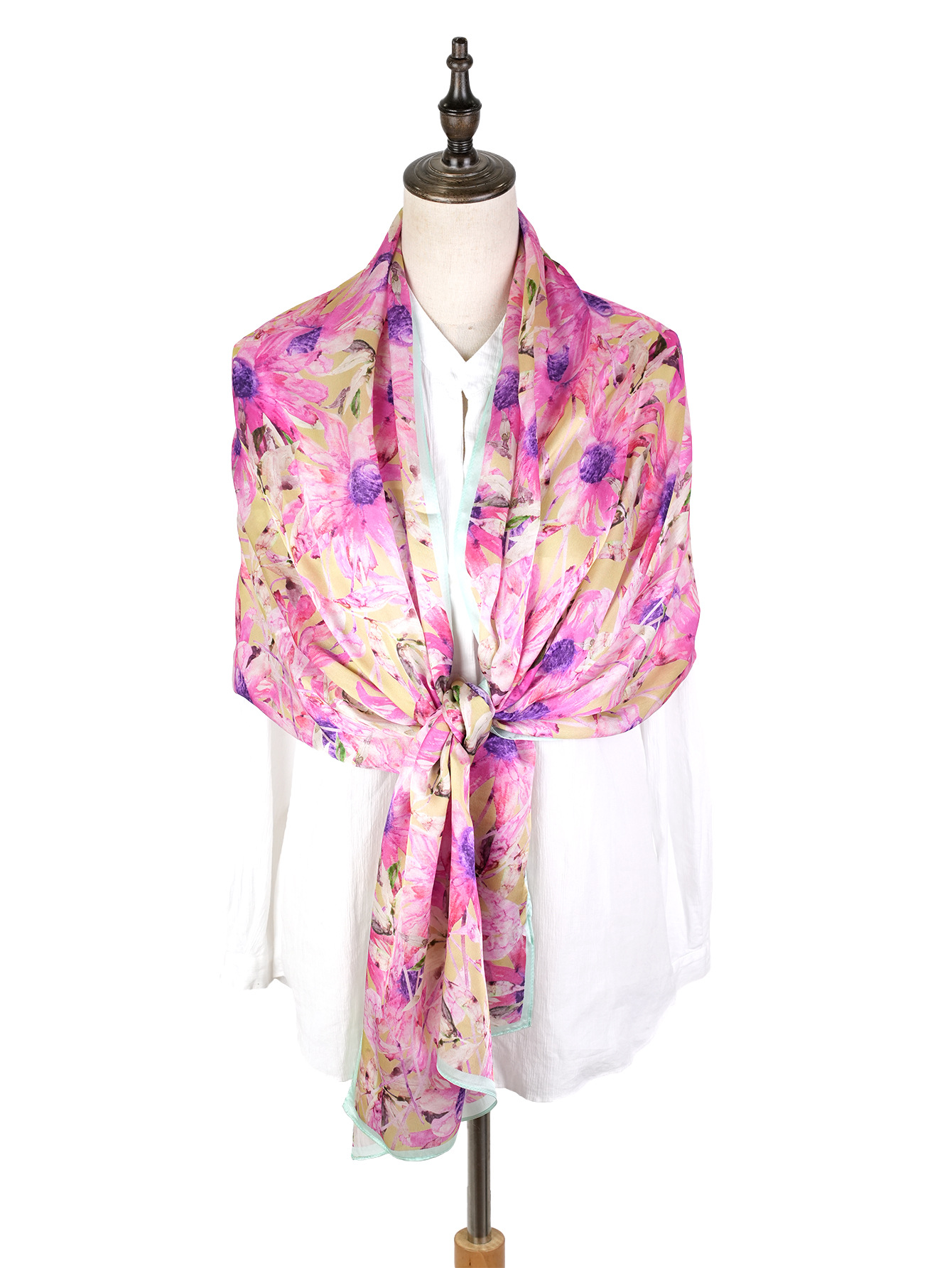 New European and American thin silk printed silk scarf, women's travel beach sun protection scarf, fashionable mulberry silk high-end shawl