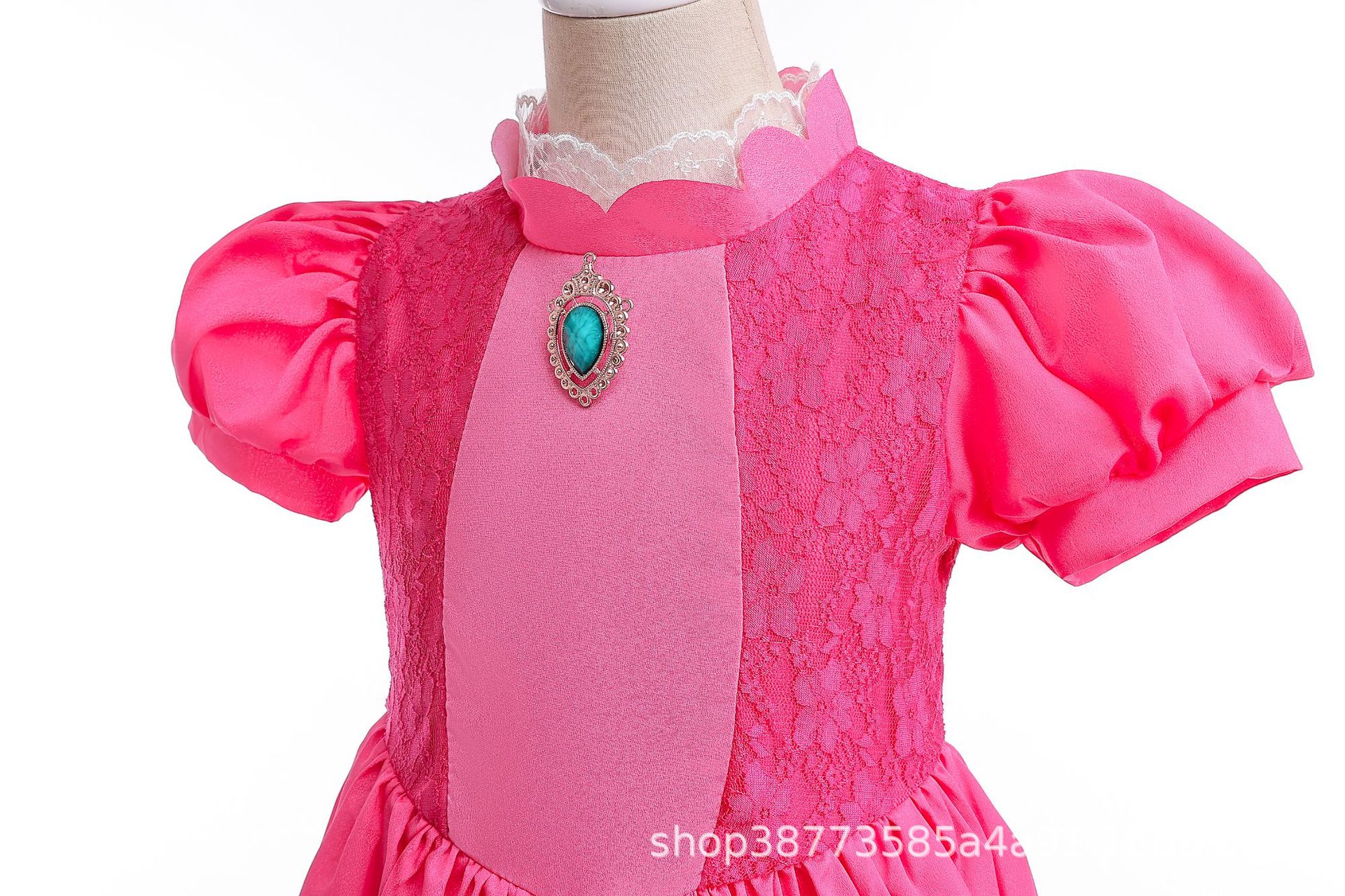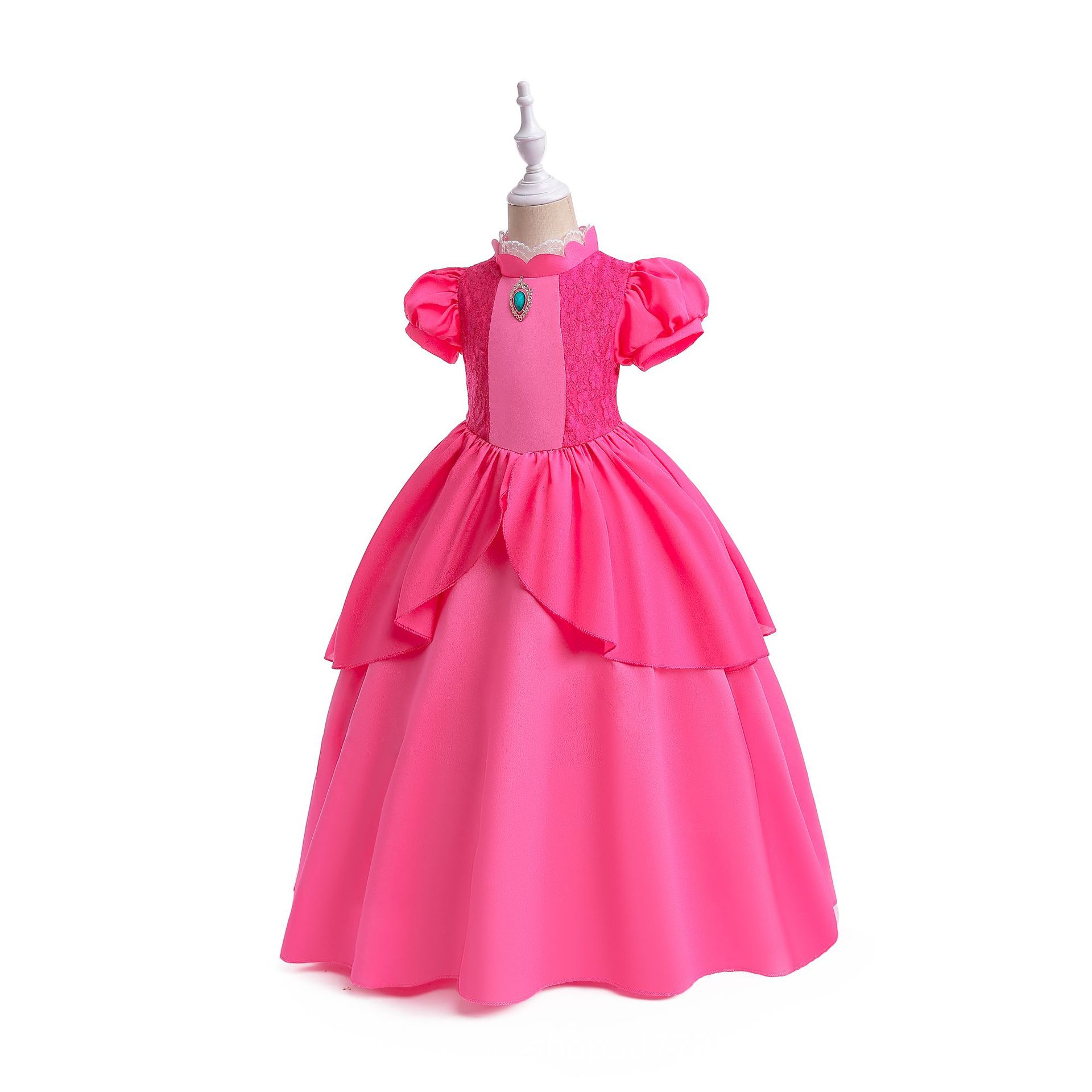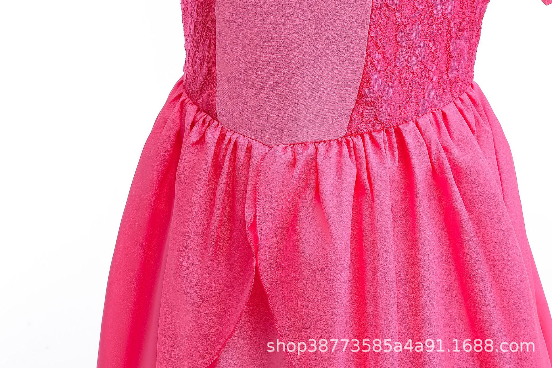 New export product cosplay Princess Peach Girls' dress, lace patchwork puffed sleeve performance costume