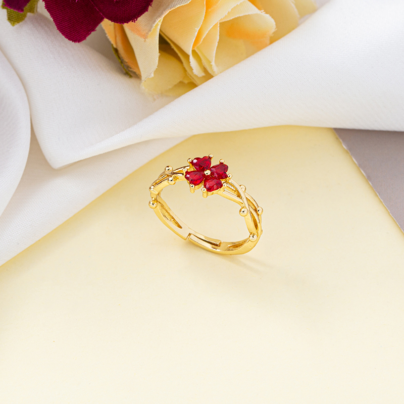 New floral red and purple four-leaf clover rings, 18K real gold color retention electroplated open ring, adjustable size, simple and fashionable, best-selling welfare style