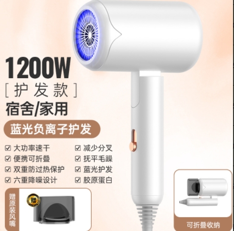 New folding household quick-drying electric hair dryer, portable hotel blue light T-shaped student dormitory hammer hair dryer