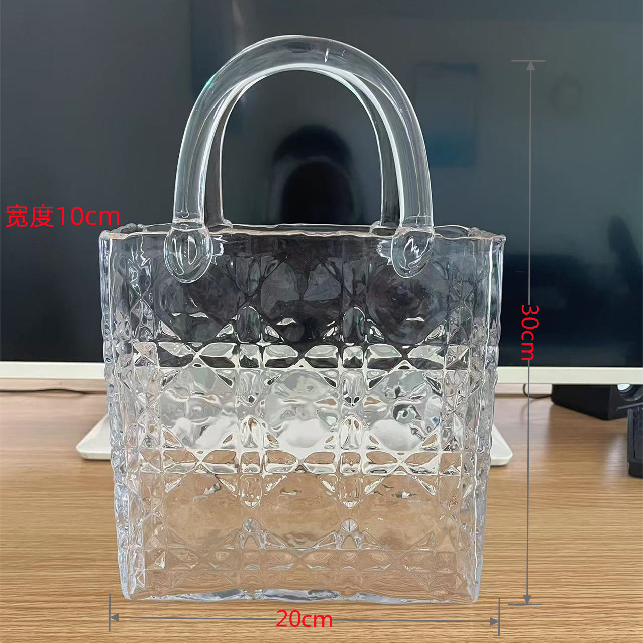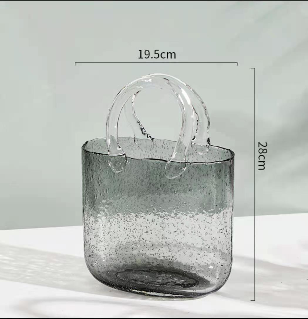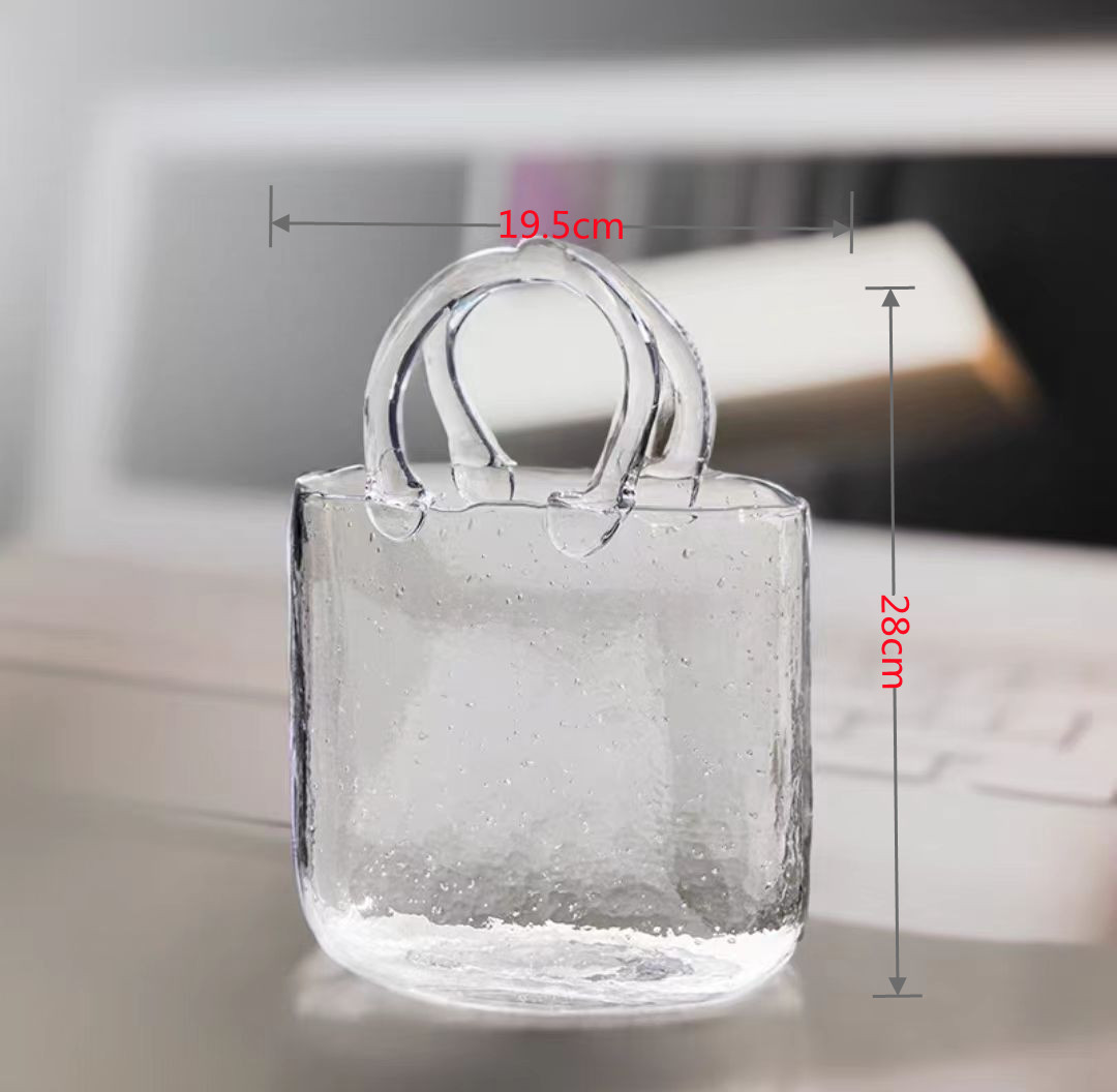 New glass handbags, transparent vases, illustrations, creative desktop ornaments, cross-border products, bubble bottles, hand-held baskets, crystal handicrafts