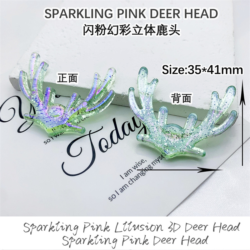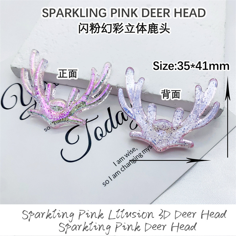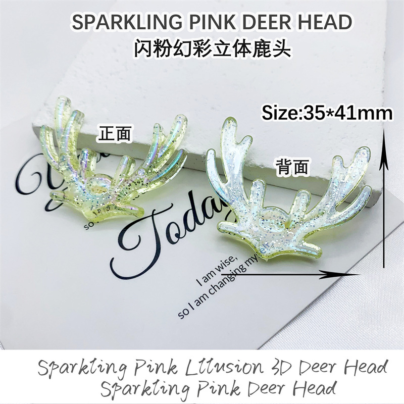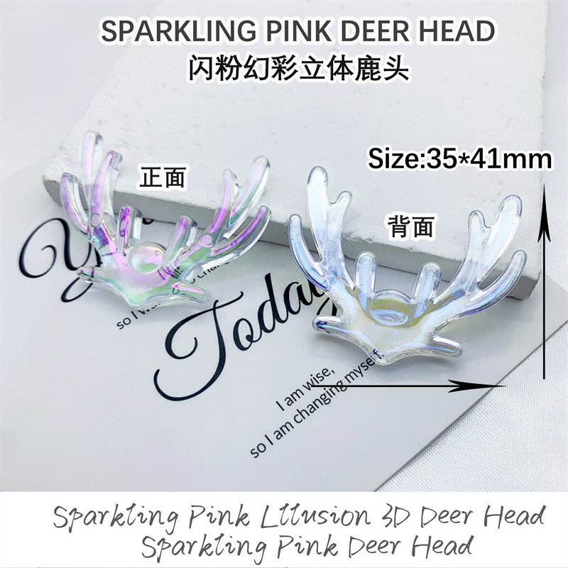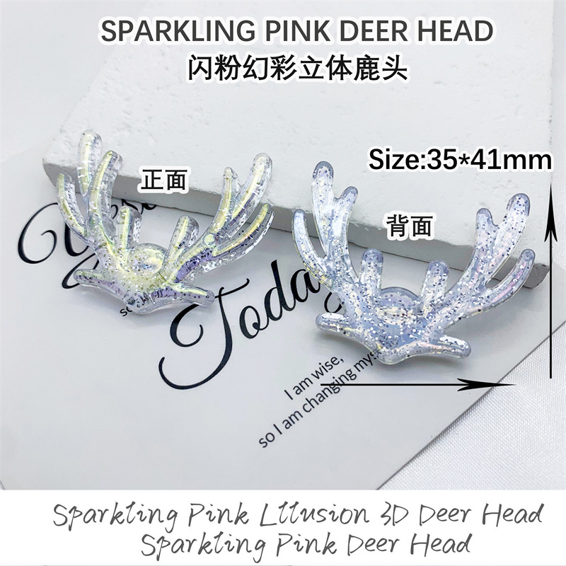 New glitter and iridescent three-dimensional deer head acrylic patch creative DIY decorative hair clip, phone case accessory