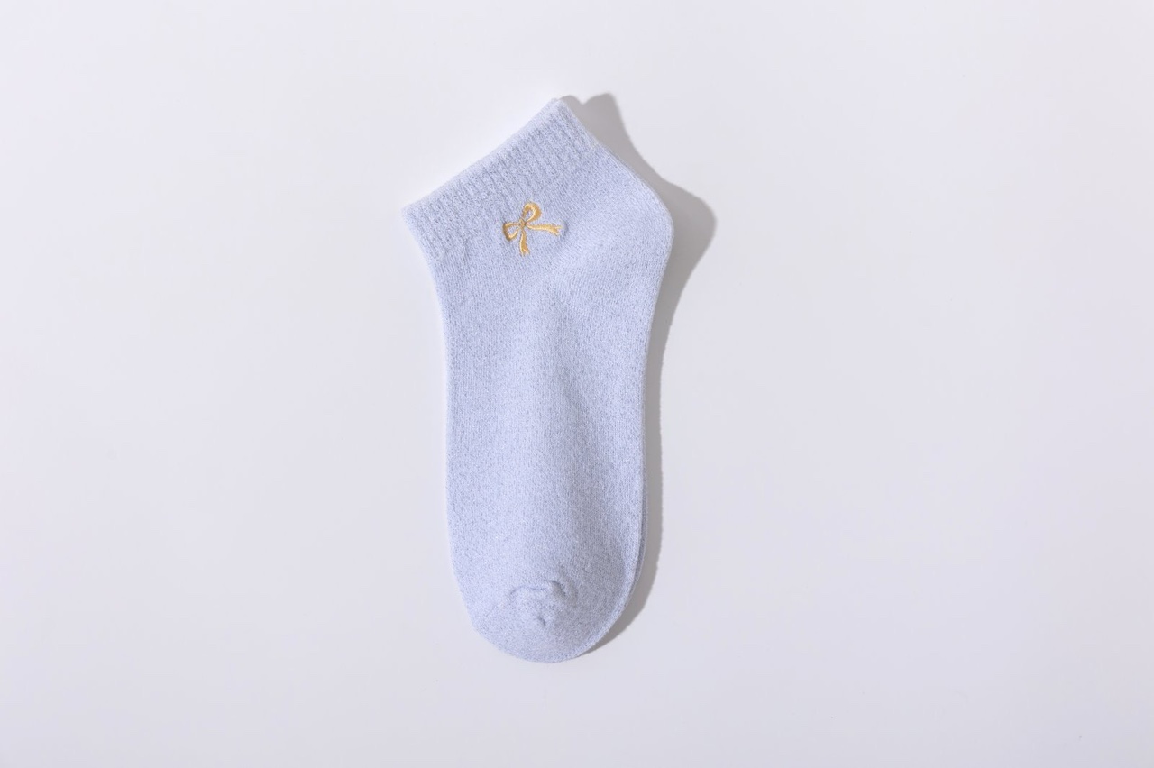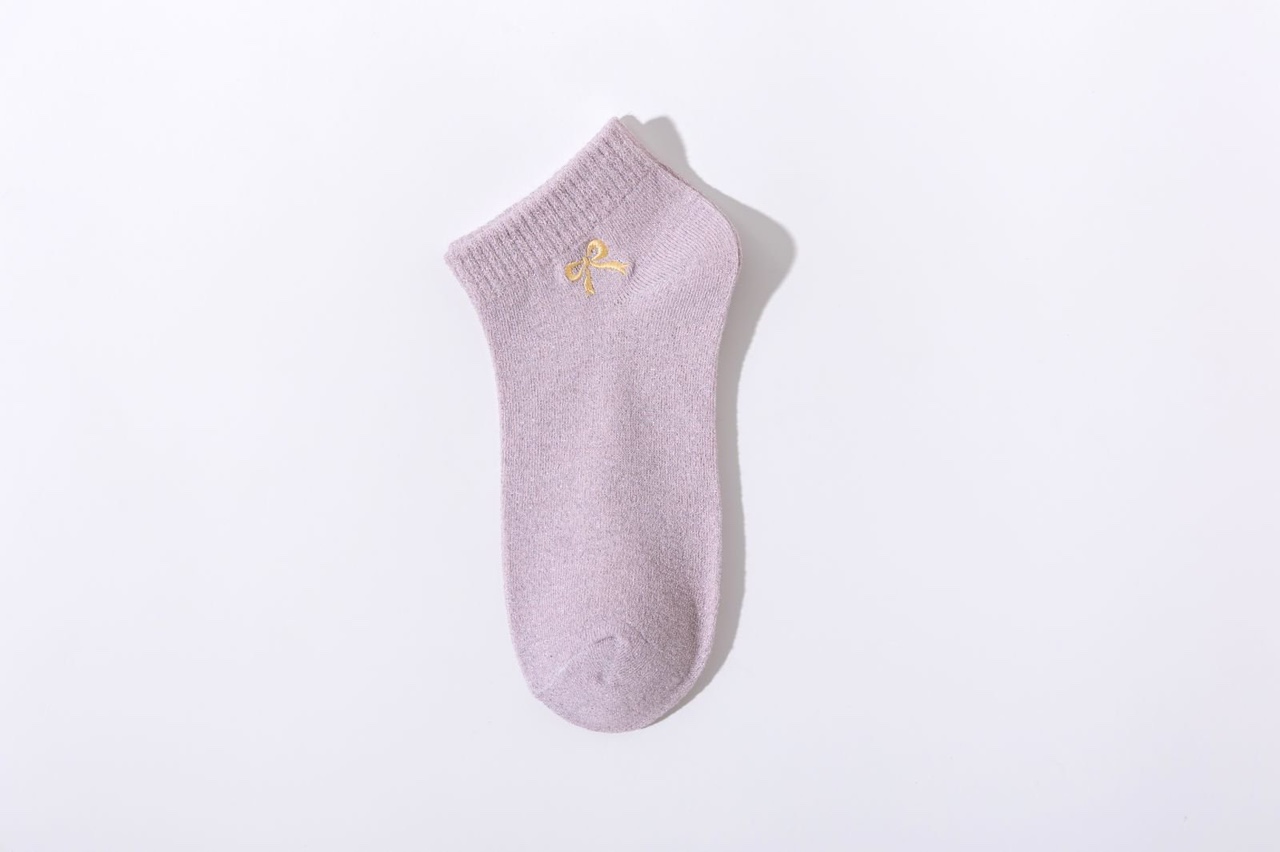 New gold and silver thread women's socks, Korean version bow embroidery short socks, cross-border wholesale