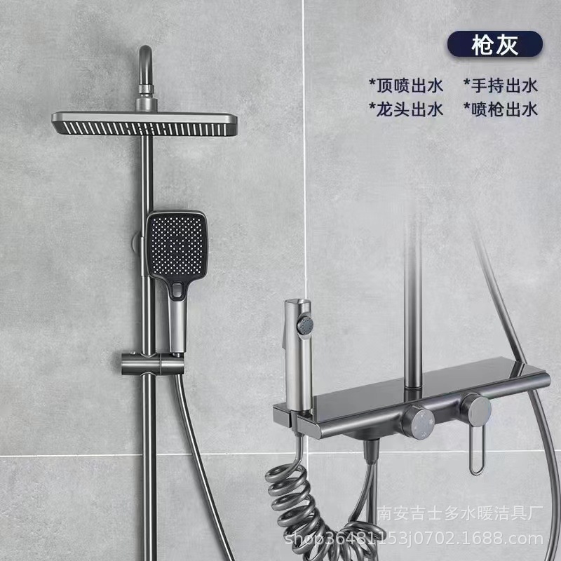 New gun gray showerhead set, bathroom all-copper showerhead, bathroom pressurized shower, white waterfall large showerhead