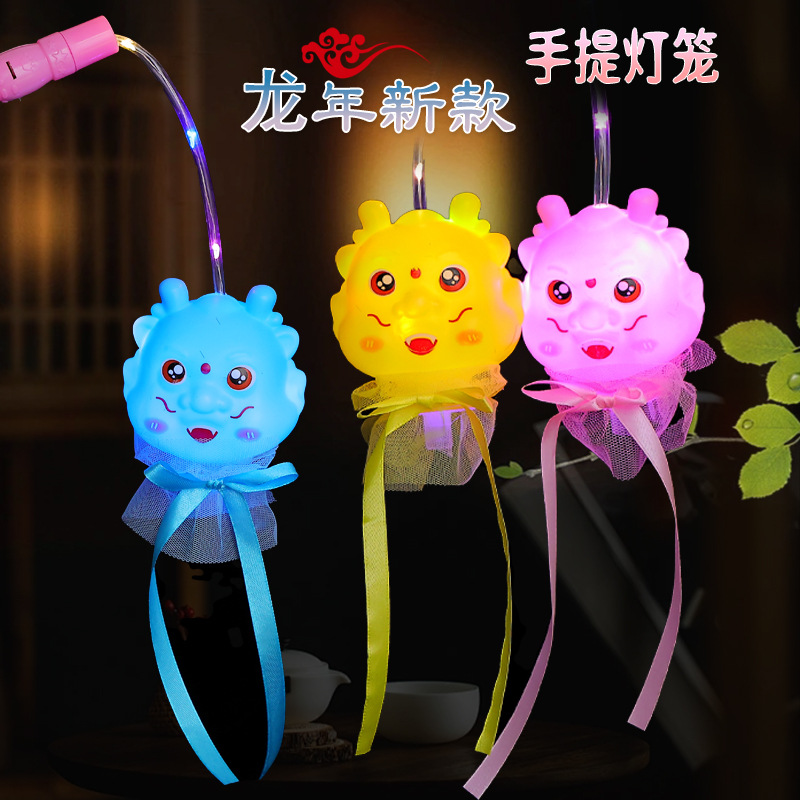 New hand-held lanterns for the Year of the Dragon 2024, featuring little dragon figures, children's luminous toys and flashing lanterns, are available for wholesale at night market stalls