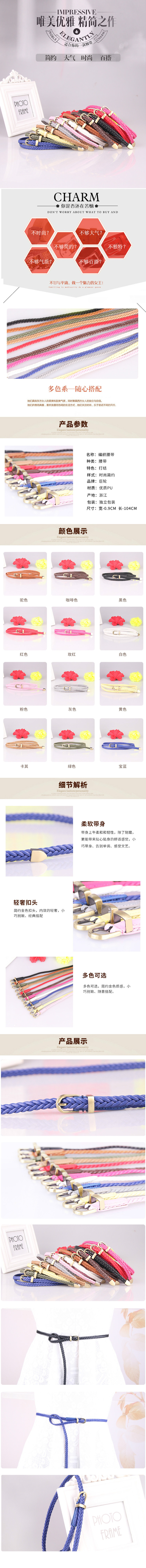 New hand-woven belt, women's pin buckle, versatile thin waist belt, women's rope and belt decoration, factory direct sales 616