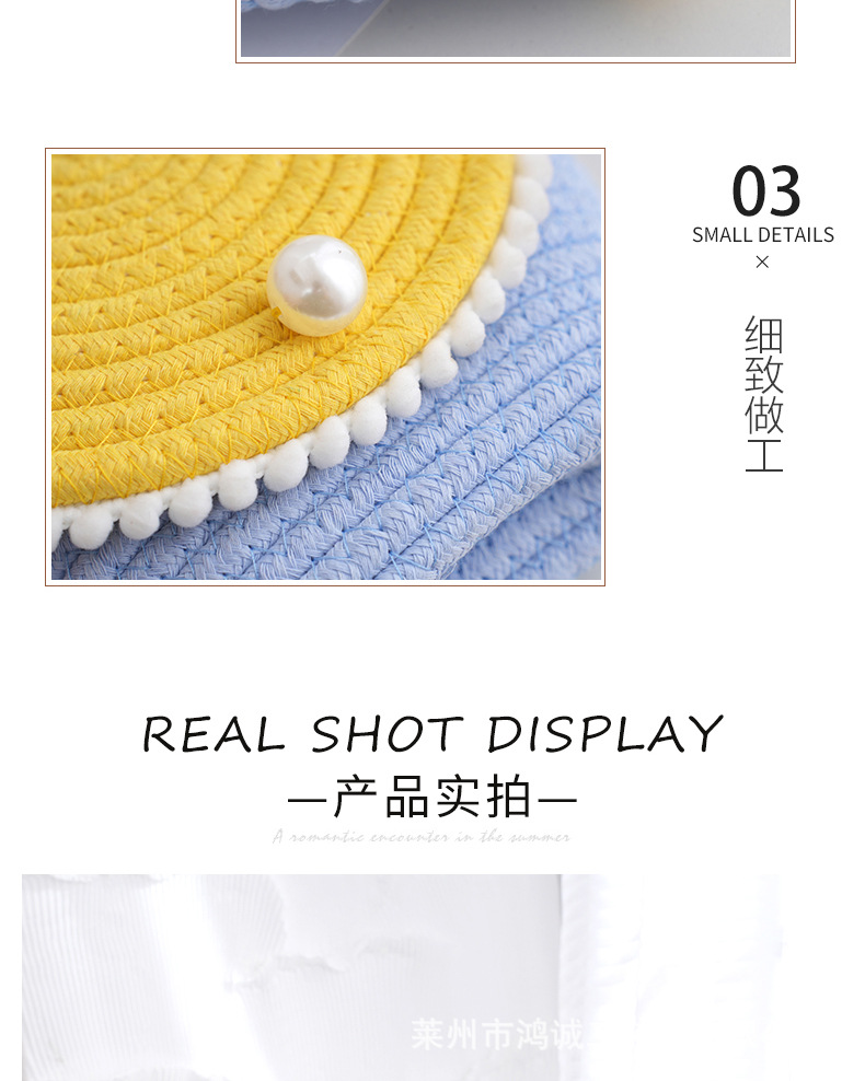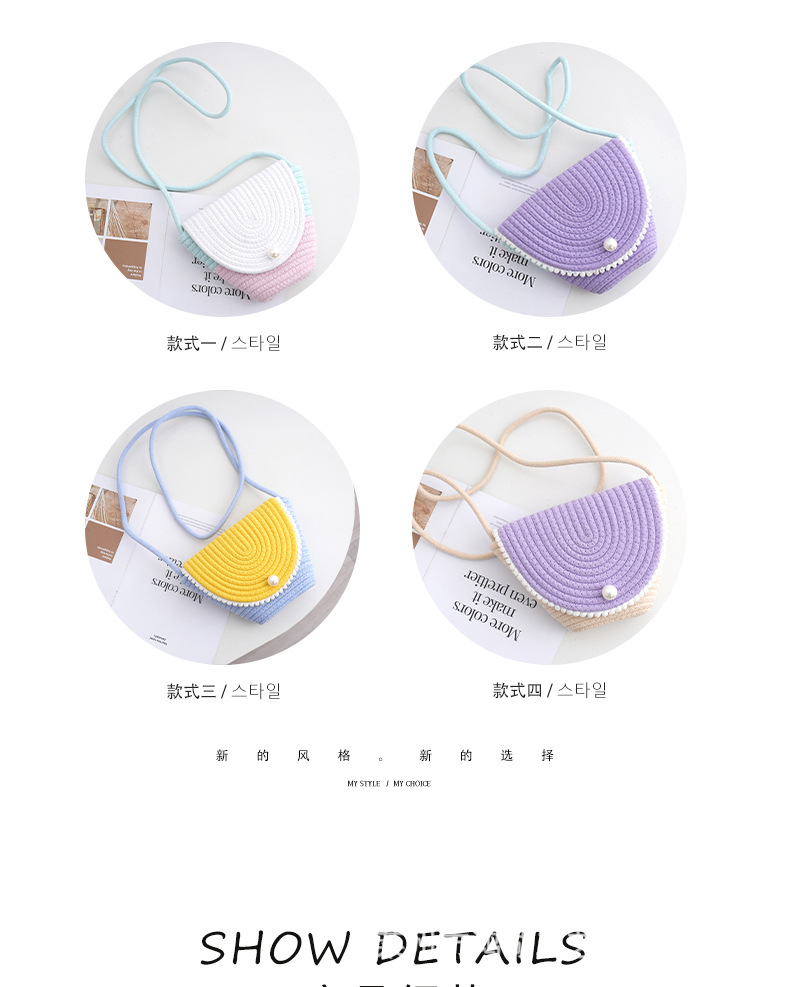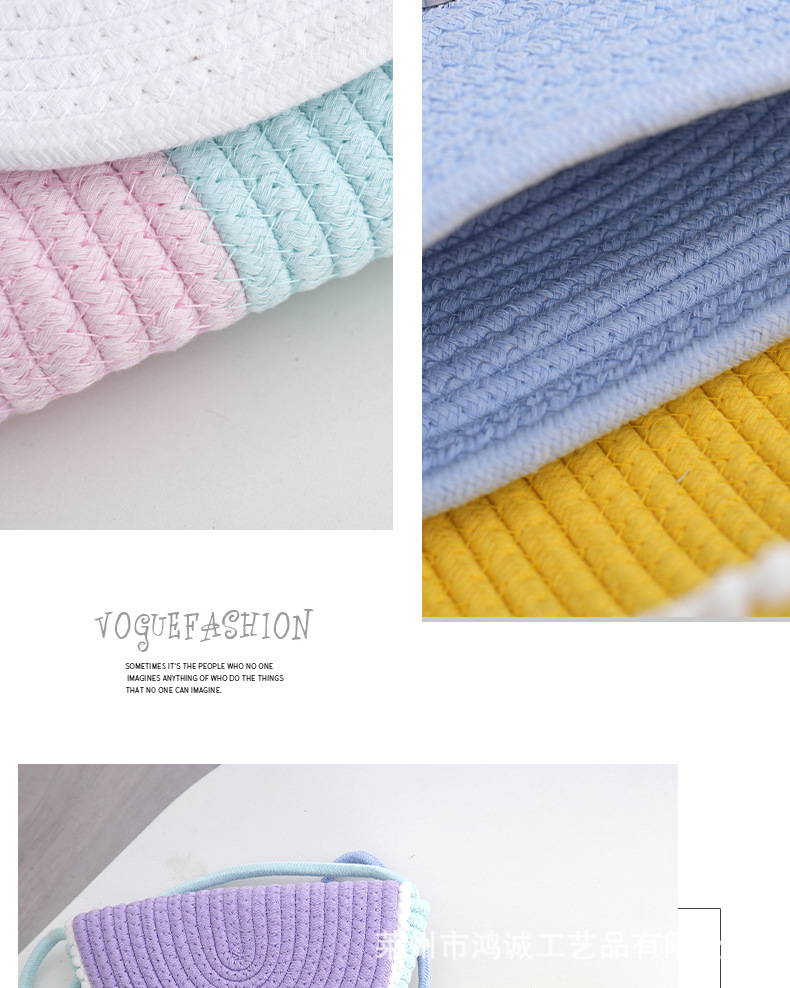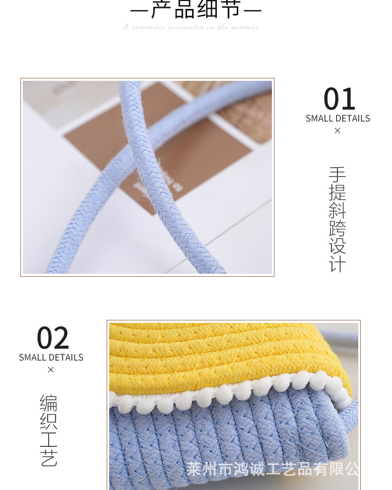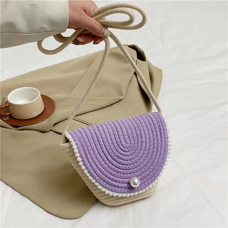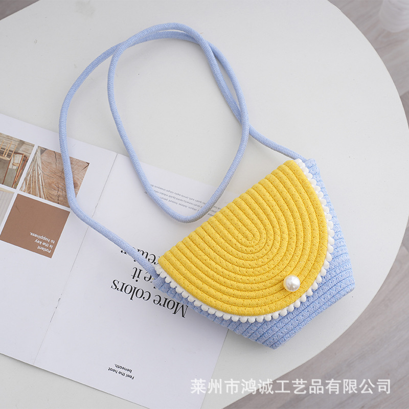 New handcrafted cotton rope woven bag, color-blocked pearl button crossbody bag, cute girl's color-blocked beach bag, women's bag