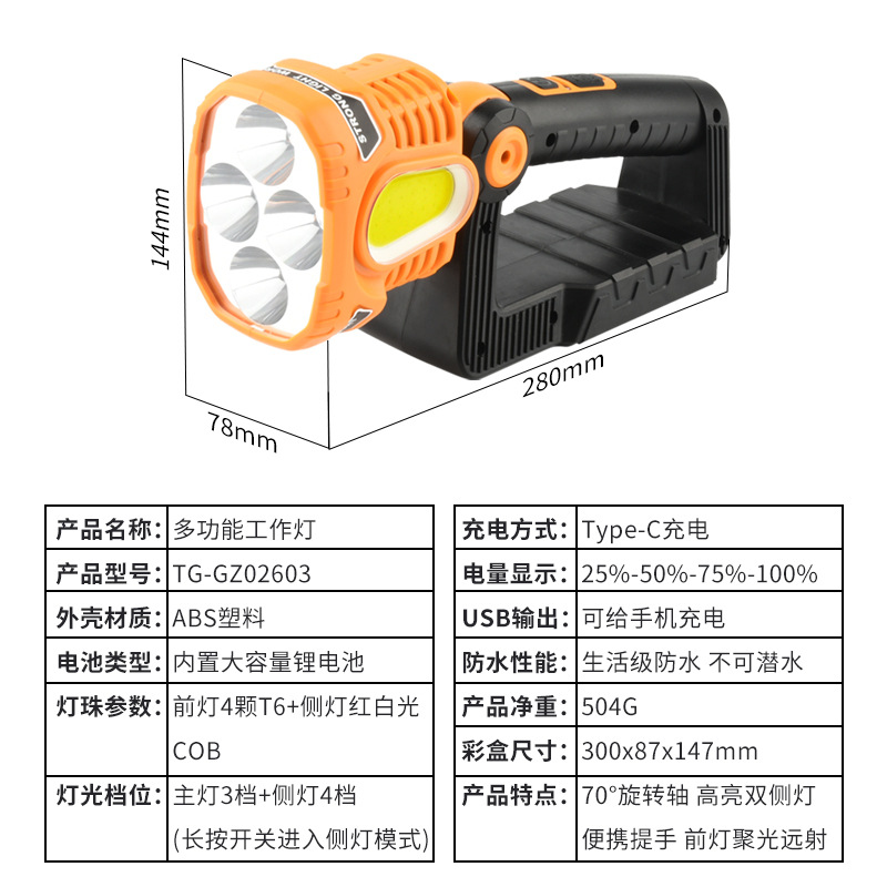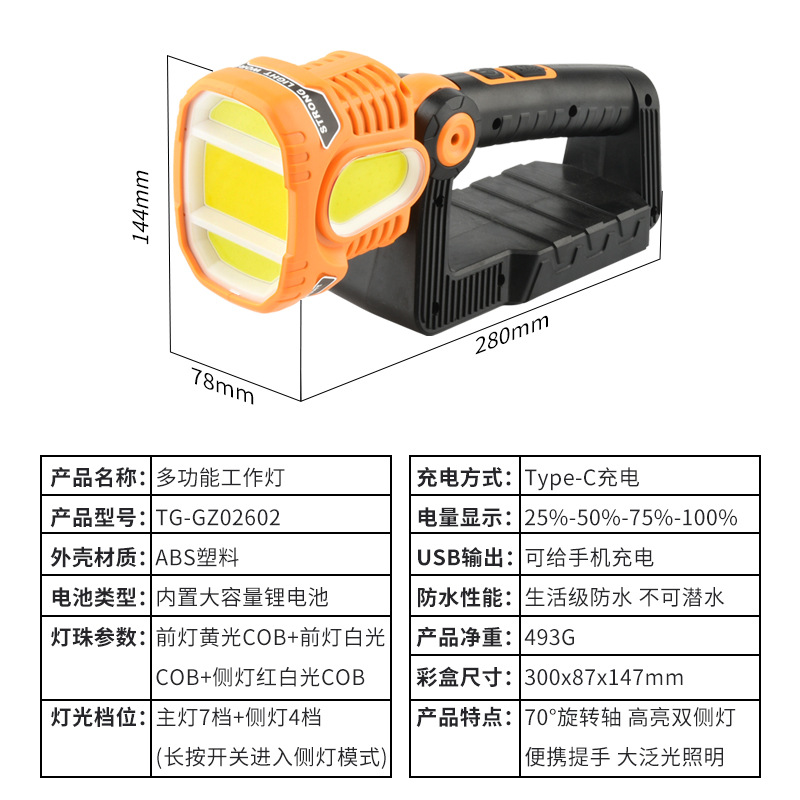 New handheld work light, LED car maintenance light, COB work light, camping lighting and inspection light