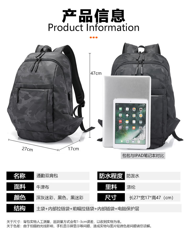 New Korean-style fashionable and trendy travel backpack, casual outdoor lightweight and simple computer double-shoulder men's bag factory supply