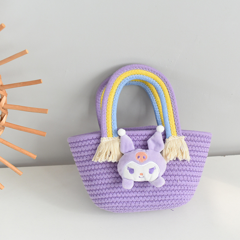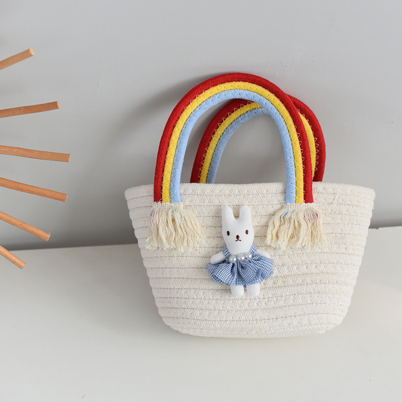 New Korean-style rainbow cloud handbag for girls, children's woven bag, Korean-style large-capacity straw woven handbag