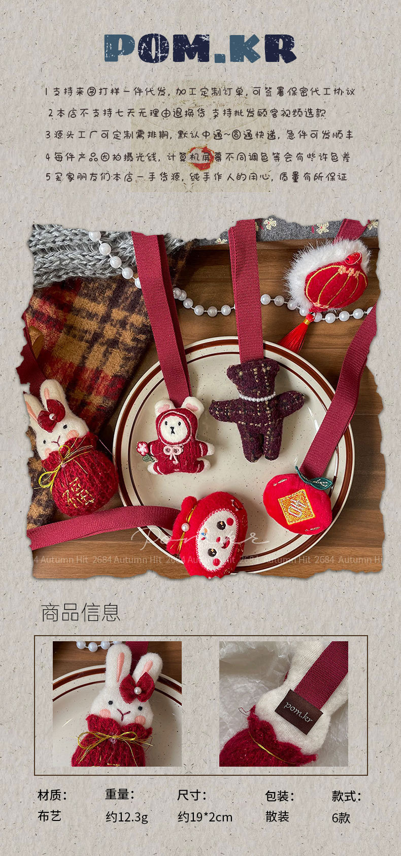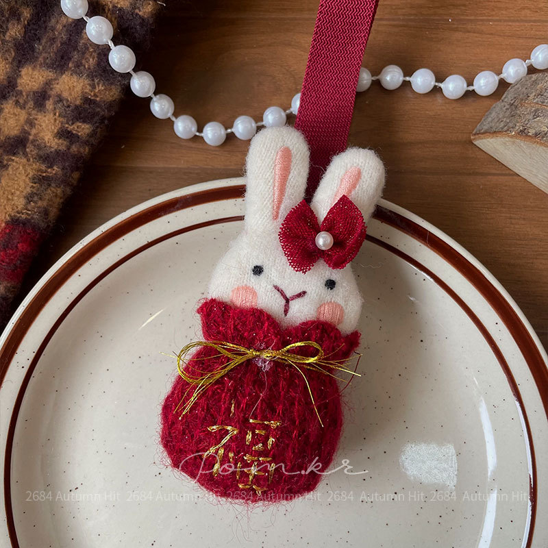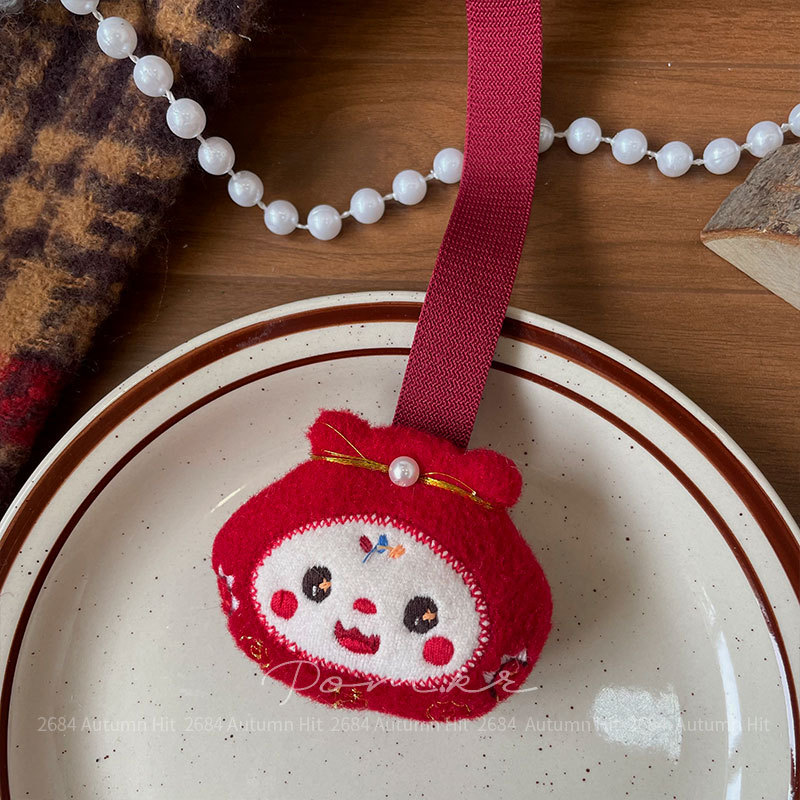 New Korean-style red cartoon fabric children's accessories, hand-held clothing and accessories, New Year bag accessories, women's red festive plush pendants, rabbit bear Daruma Apple-shaped cute New Year decorations, and adorable pendants